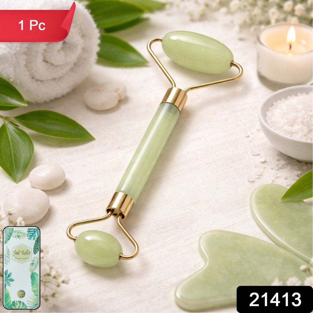 premium dual head jade stone face roller, gua sha massage tool set, natural facial massager, skin tightening tool, puffiness reduction roller, relaxation therapy massager, luxury beauty care tool, face massage roller, neck massage tool, under eye roller, anti-aging facial roller, skincare massage tool, jade gua sha set, facial lymphatic drainage tool, spa beauty tool