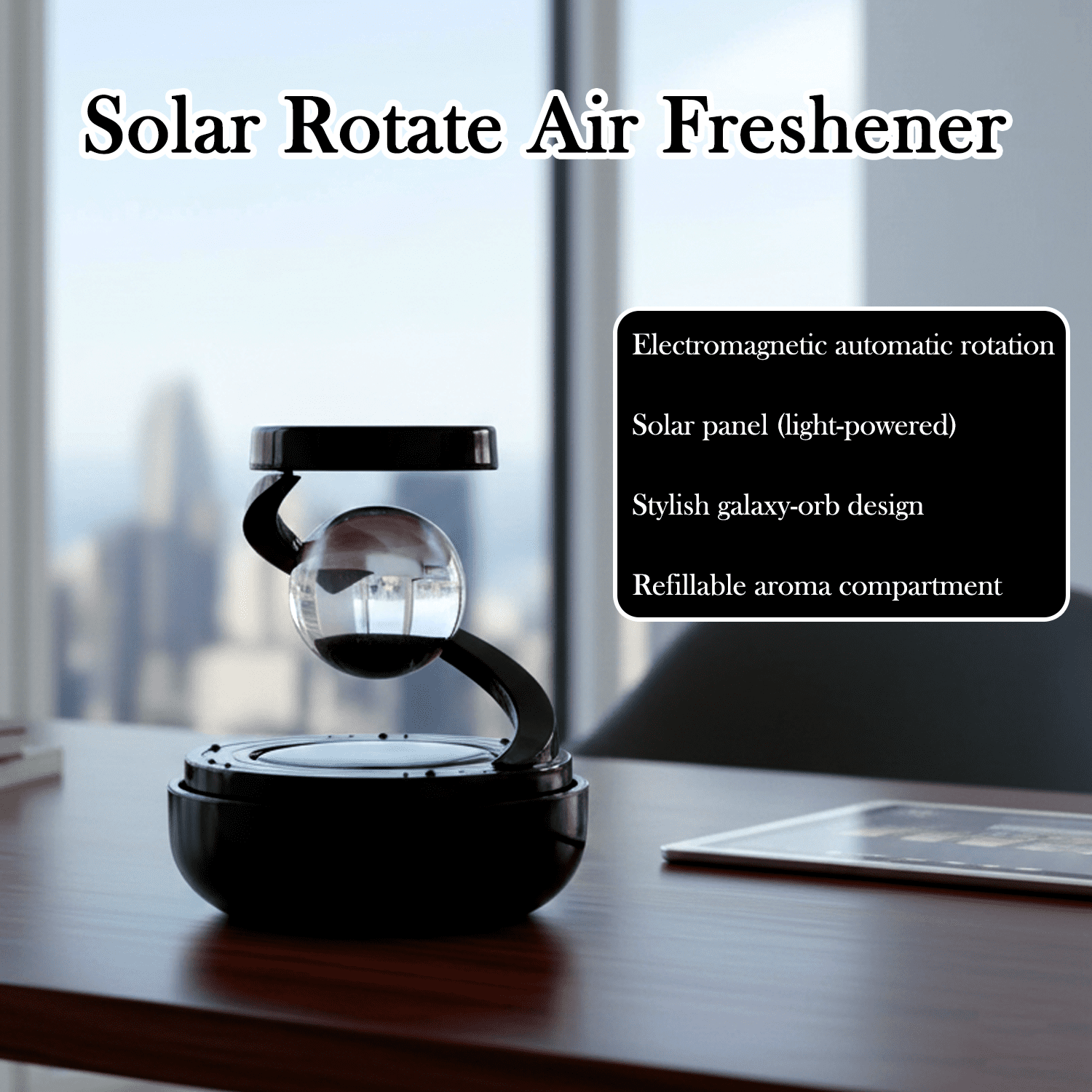 This innovative solar-powered rotating car air freshener combines pleasant fragrance diffusion with a stylish, futuristic dashboard décor piece. Designed with an electromagnetic spinning mechanism, the reflective metallic sphere rotates automatically under sunlight or indoor light, gently releasing fragrance into the air for a refreshing, long-lasting aroma inside your vehicle. The solar-powered system eliminates the need for batteries, making it eco-friendly and maintenance-free. The elegant galaxy-inspired design enhances the interior of any car while offering a calming visual effect during drives. Sleek, stable, and highly efficient, this rotating air freshener makes your car smell fresh while also serving as a premium decorative accessory.