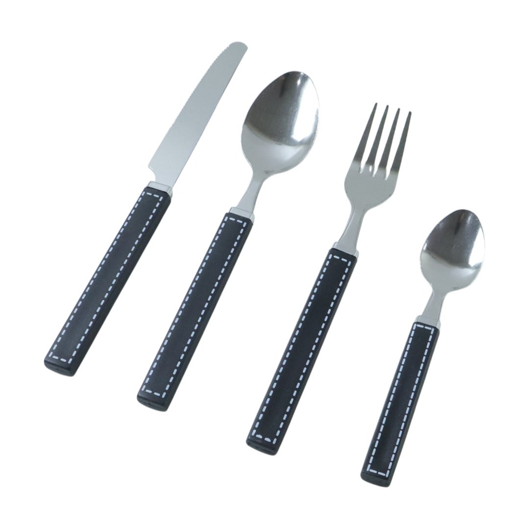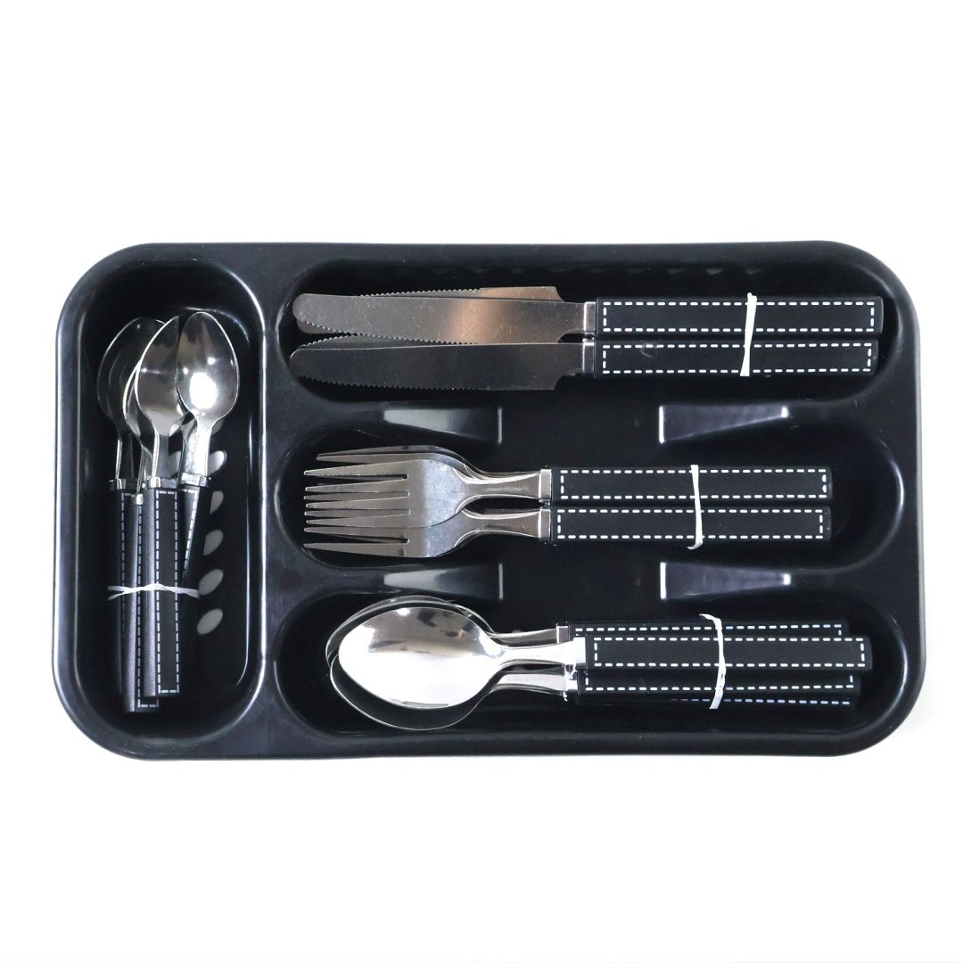 Premium Stainless Steel Kitchen Plastic Handle Cutlery Set With Tray (24 Pc Set)