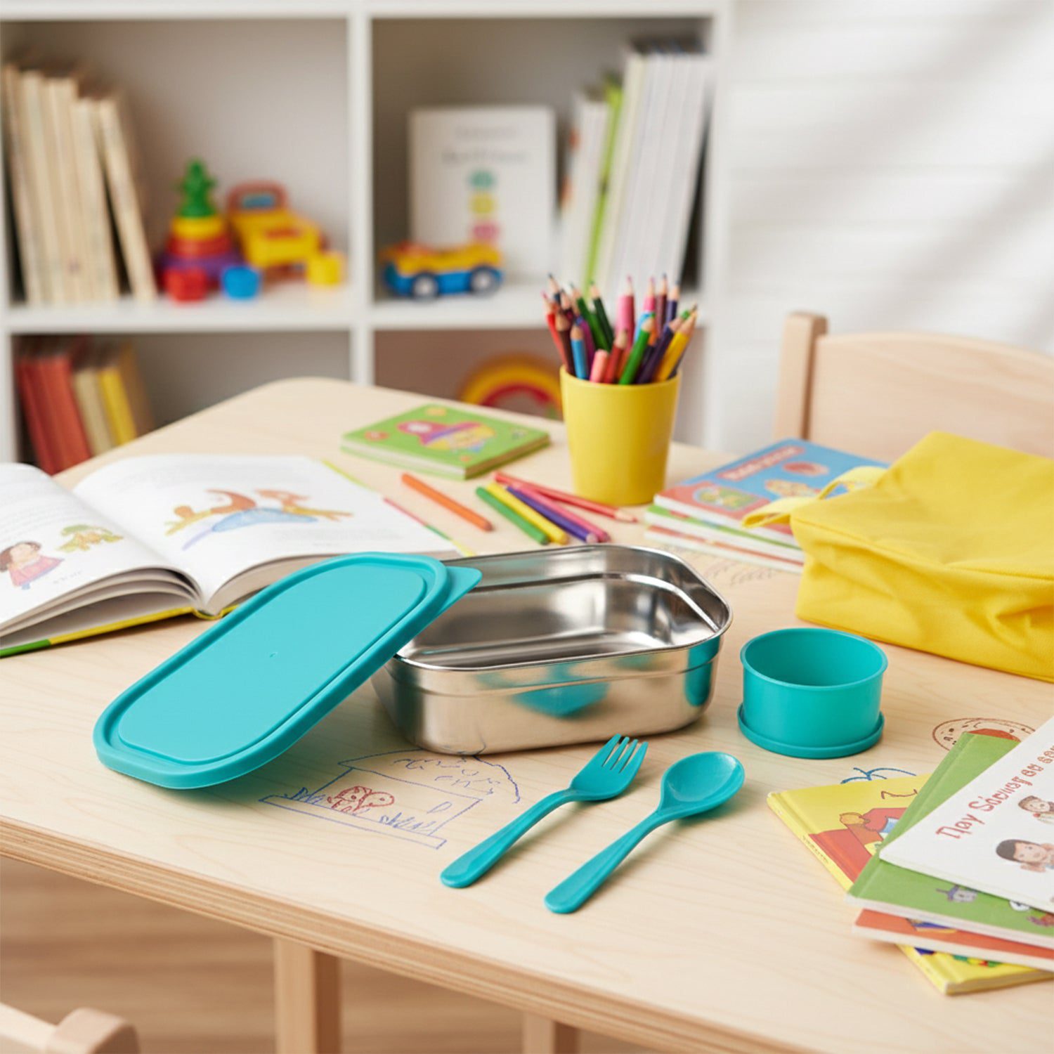 Comes with matching fork and spoon for a complete, ready-to-use lunch solution.
