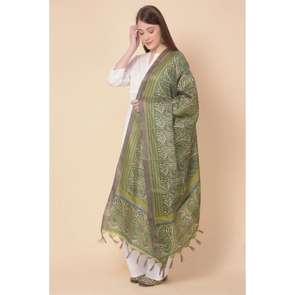 Elegant Women’s Green Printed Art Silk Dupatta – NariHaat Collection