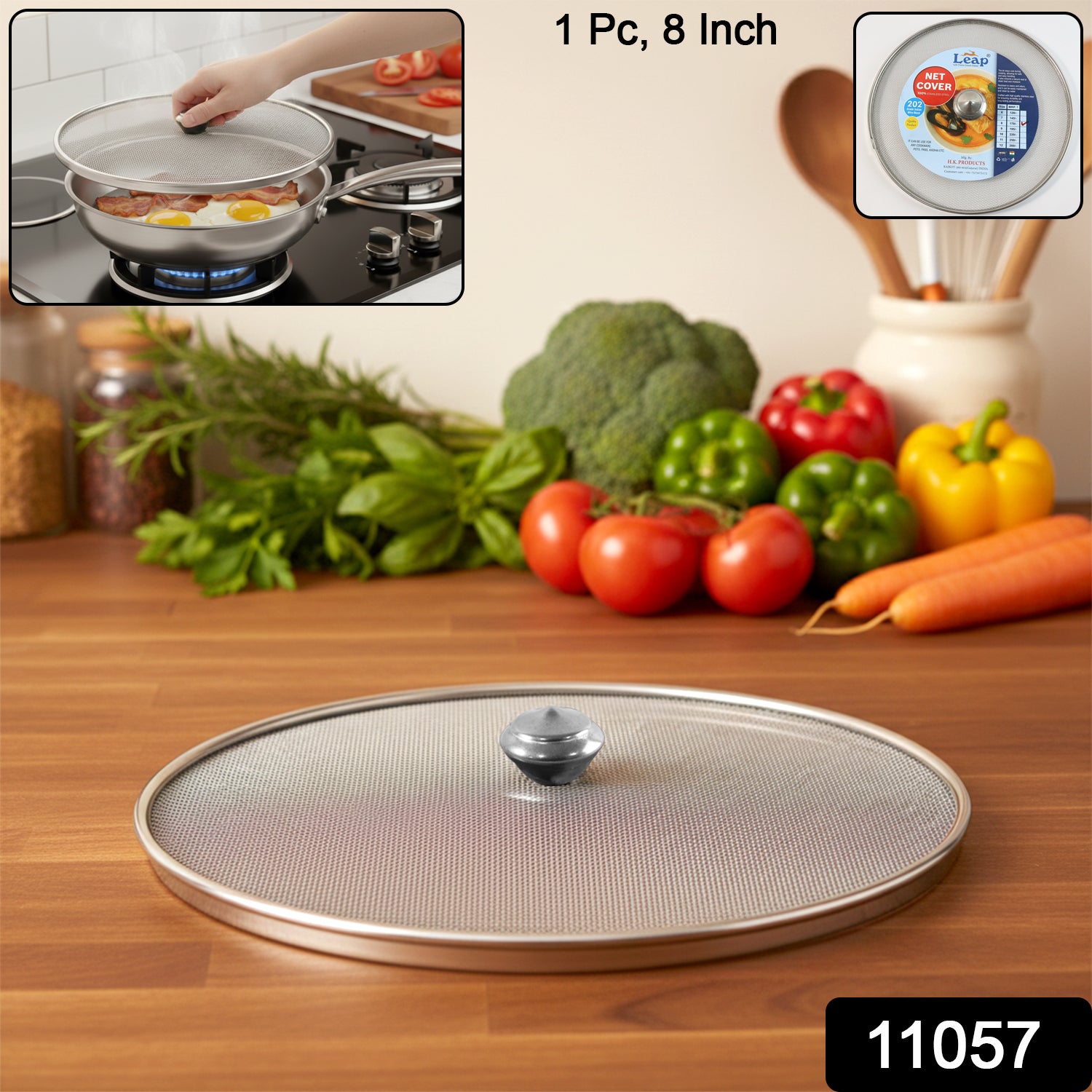 stainless steel food net cover, fine mesh food cover lid, food net cover 8 inch, splatter guard lid, insect protection food cover, reusable food net lid, stainless steel mesh cover, kitchen food cover, frying pan splatter guard, kadhai splatter guard, plate food cover net, oil splatter guard mesh, cooking splatter screen