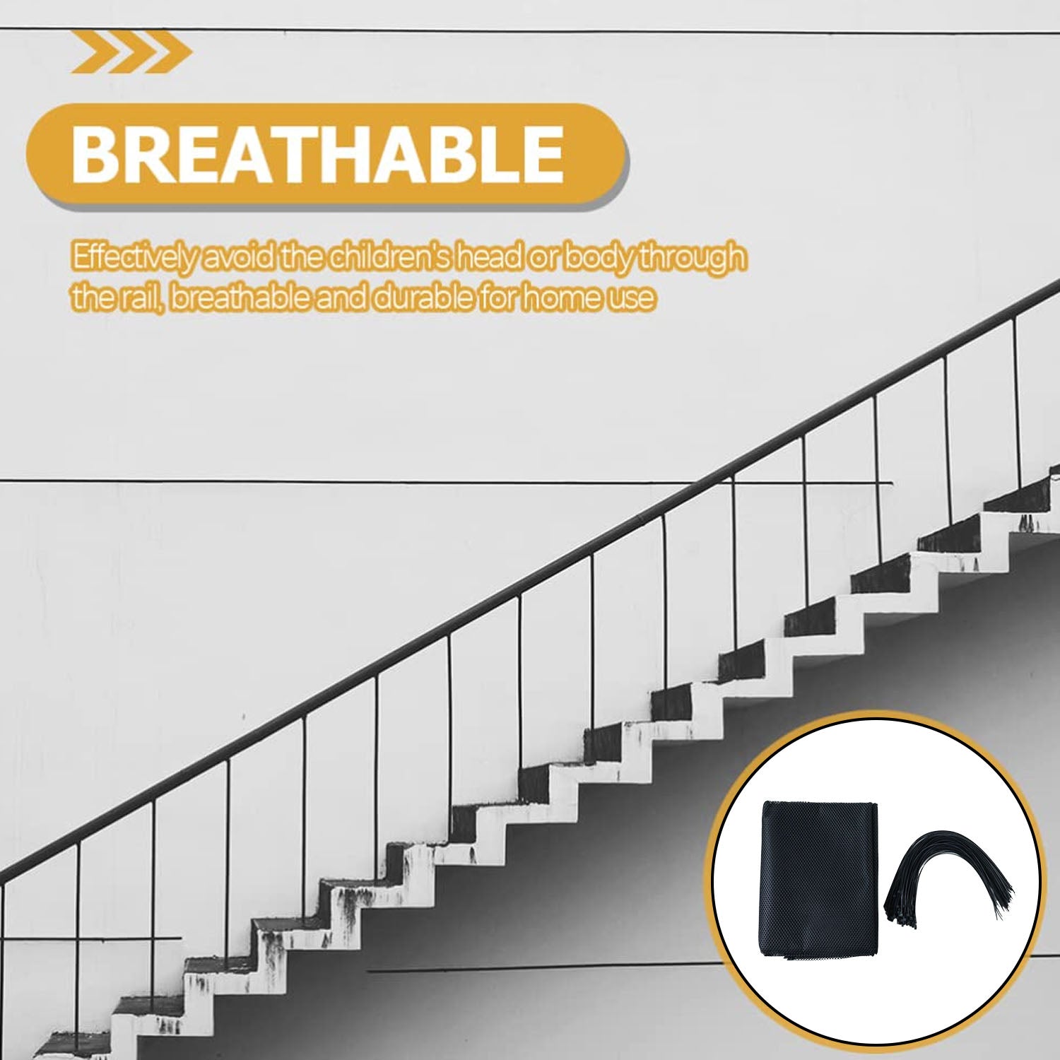 • Prevents children and pets from slipping through railings