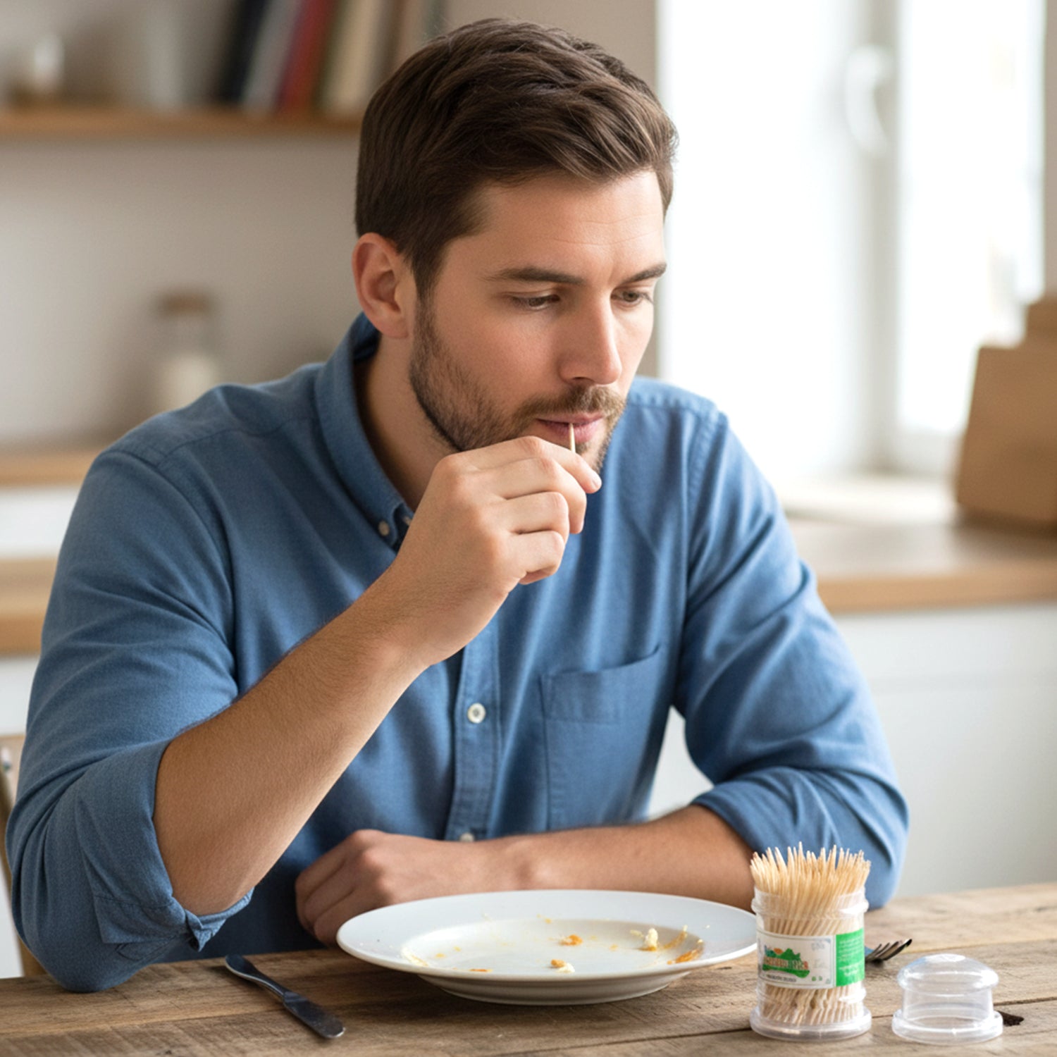 Maintain proper dining hygiene with this premium wooden toothpick jar set designed for convenient and safe daily use. Packed in a transparent storage container with a secure lid, these disposable toothpicks are ideal for removing food particles after meals and maintaining oral cleanliness. The compact jar design keeps the toothpicks dust-free and neatly organized, making it suitable for dining tables, kitchen counters, restaurants, cafes, and hotels. Easy to store and simple to access, this toothpick container is a must-have essential for every household and food service setup. Its lightweight and portable design also makes it perfect for travel, catering events, and outdoor gatherings.