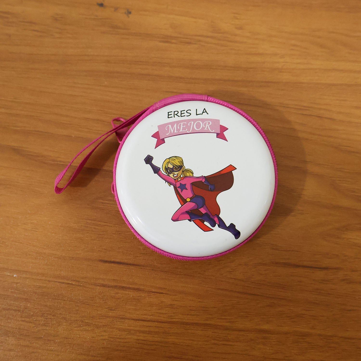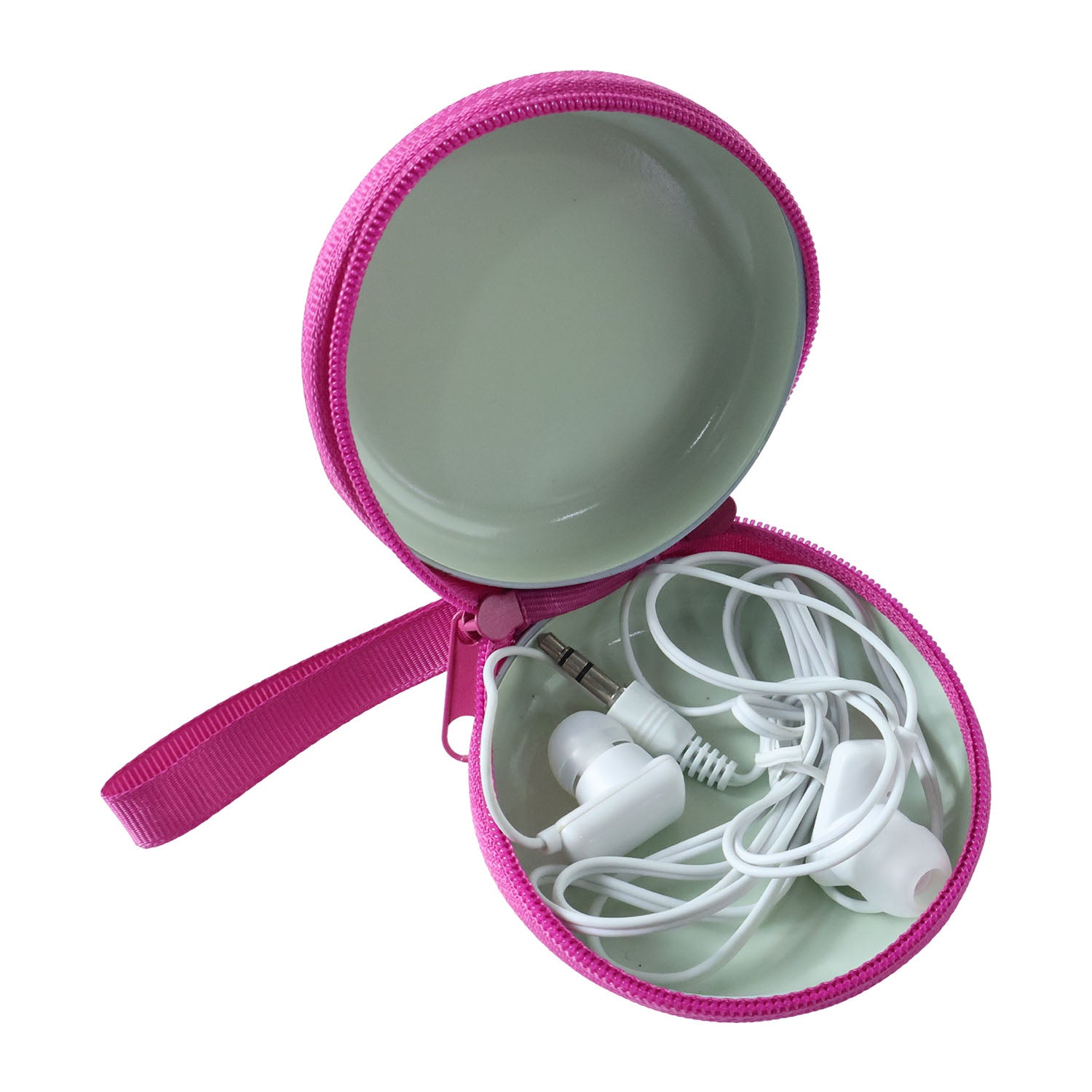 Round compact earphone storage case with zipper closure