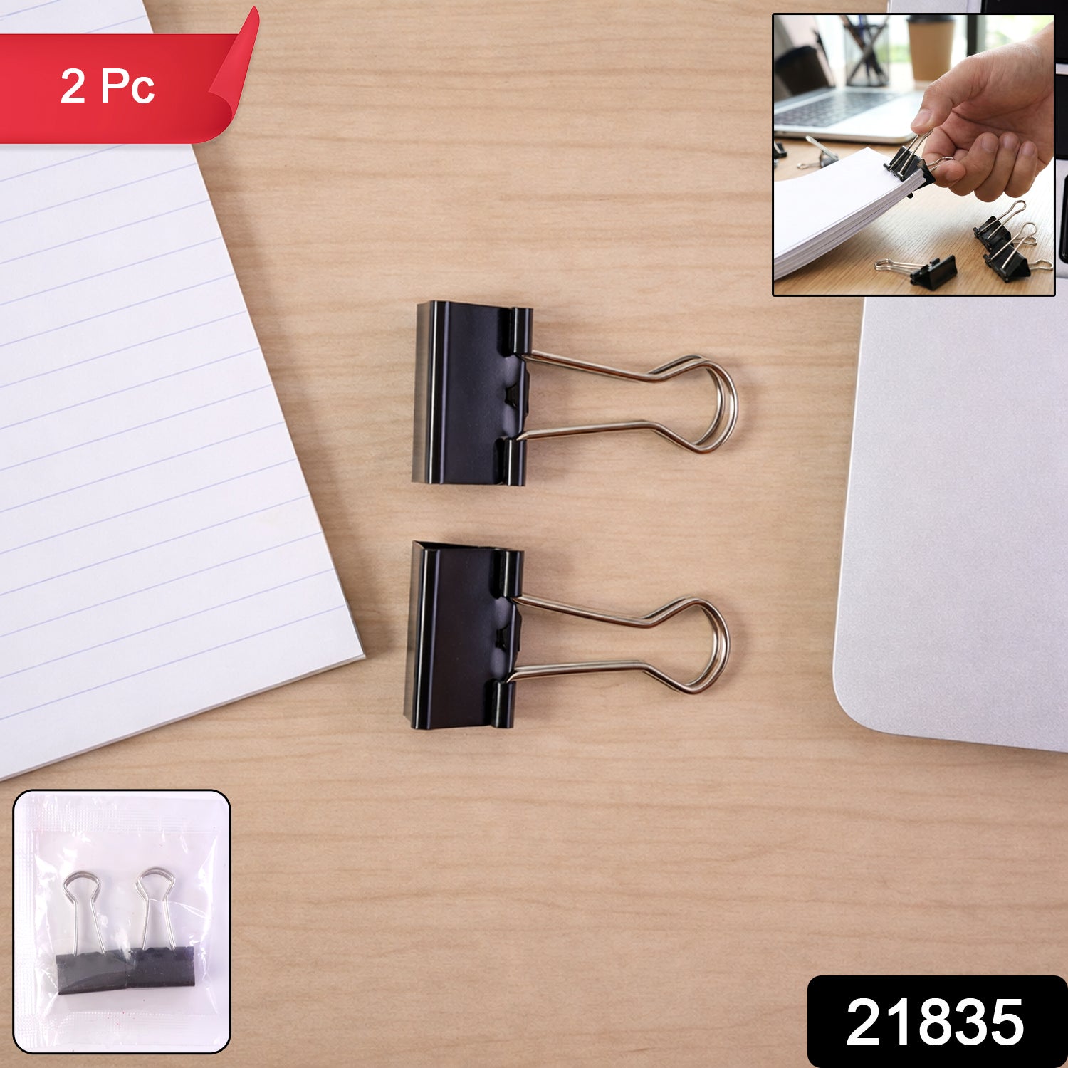 2 Pc Metal Binder Clip Set for Office & Home Use – Strong Paper Holding Clips for Documents, Files, Notes, Bills, Reports & Daily Paper Organization (2 Pc / 19mm)