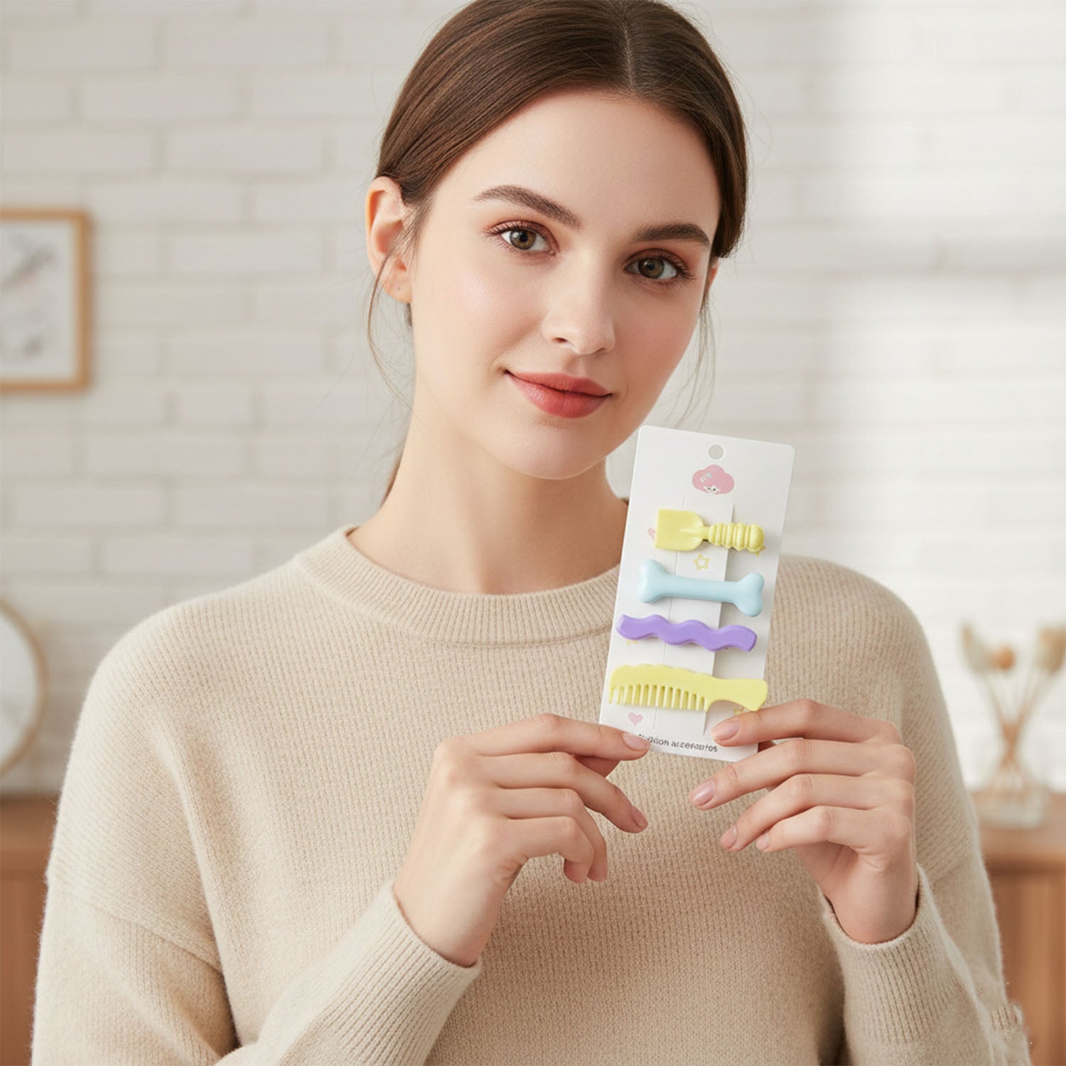 This decorative alligator hair clips set is designed to add a cute and stylish touch to everyday hairstyles. The set includes multiple uniquely designed clips that help hold hair securely while enhancing your overall look. These clips are easy to use and provide a firm grip without pulling or damaging hair. Suitable for daily wear, casual outings, or light party styling, they help manage front hair, side locks, or small sections effortlessly. A perfect blend of functionality and fashion, making it an essential hair accessory for girls and women.