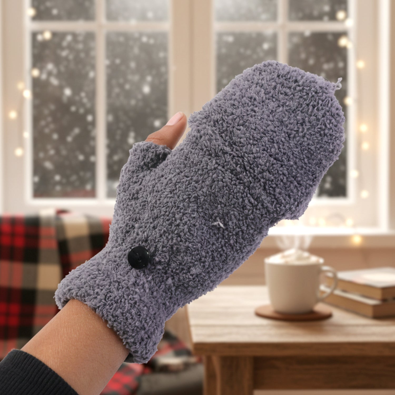 1 Pair Winter Fingerless Warm Gloves for Men & Women – Soft Fleece Hand Gloves with Button Flap Cover, Cozy Cold Weather Hand Warmer Gloves for Outdoor, Office & Daily Use