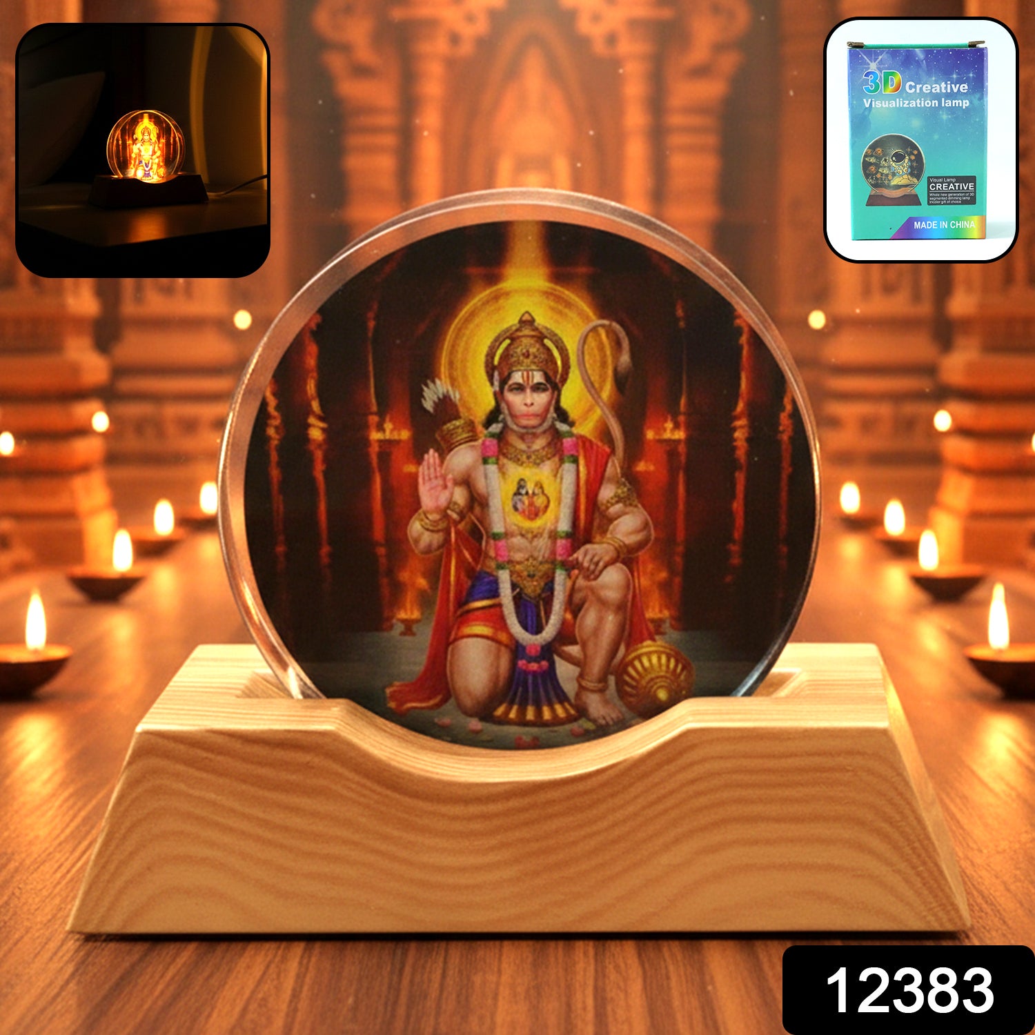 3D Creative Hanuman Ji Acrylic LED Night Lamp with Wooden Base Stand, Warm Glow Decorative Table Light for Home Temple, Bedroom & Gift Purpose, USB Powered 3D Illusion Lamp (1 Pc)