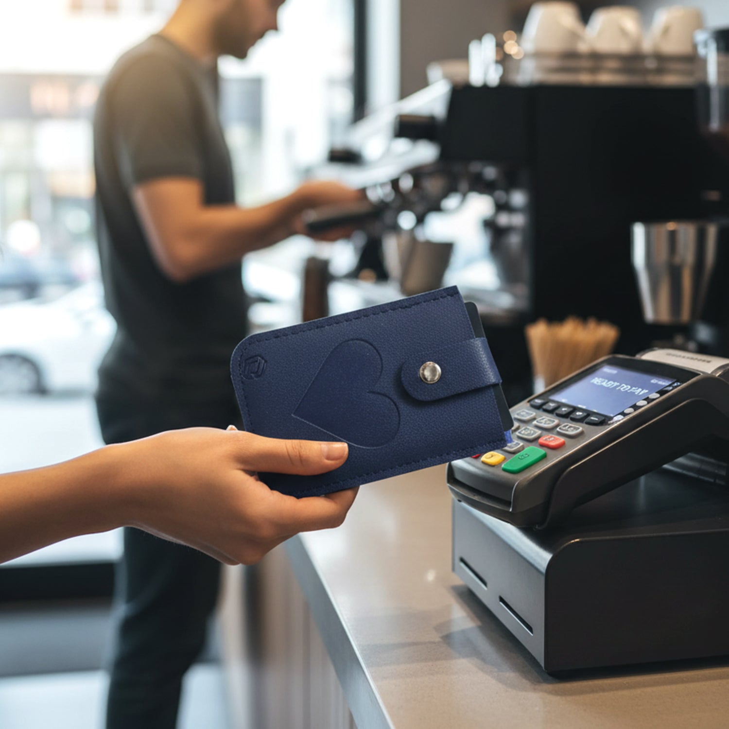 Keep your essential cards safe and stylish with this premium RFID card holder wallet designed for daily convenience. This compact card case features a beautiful heart embossed design with a secure snap button closure, making it perfect for carrying cards neatly without bulk.