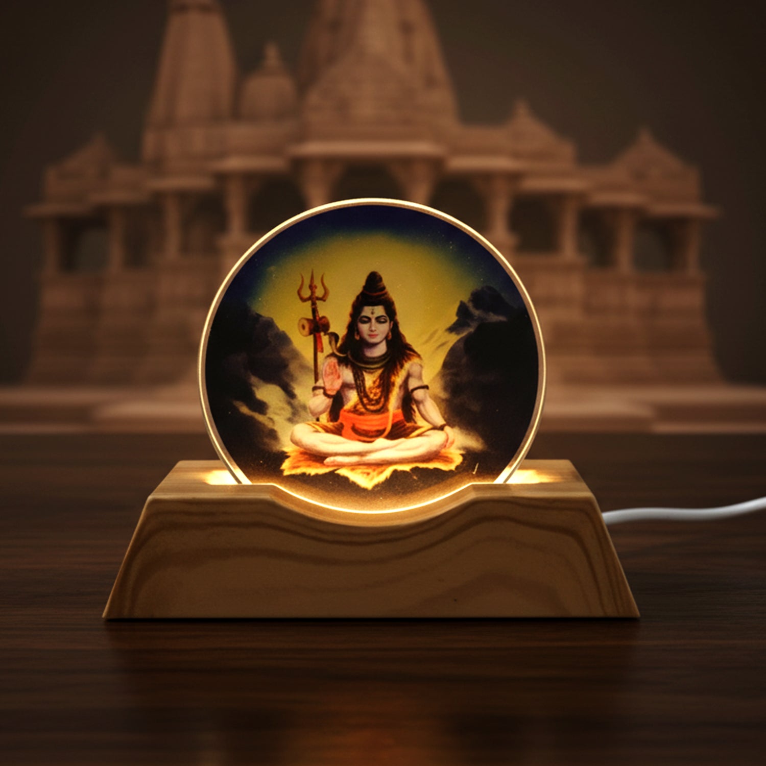 3D Creative Lord Shiva LED Night Lamp with Wooden Base, Soft Warm Glow Decorative Light for Home, Bedroom, Living Room, Mandir, Gift & Festive Decoration (1 Pc)