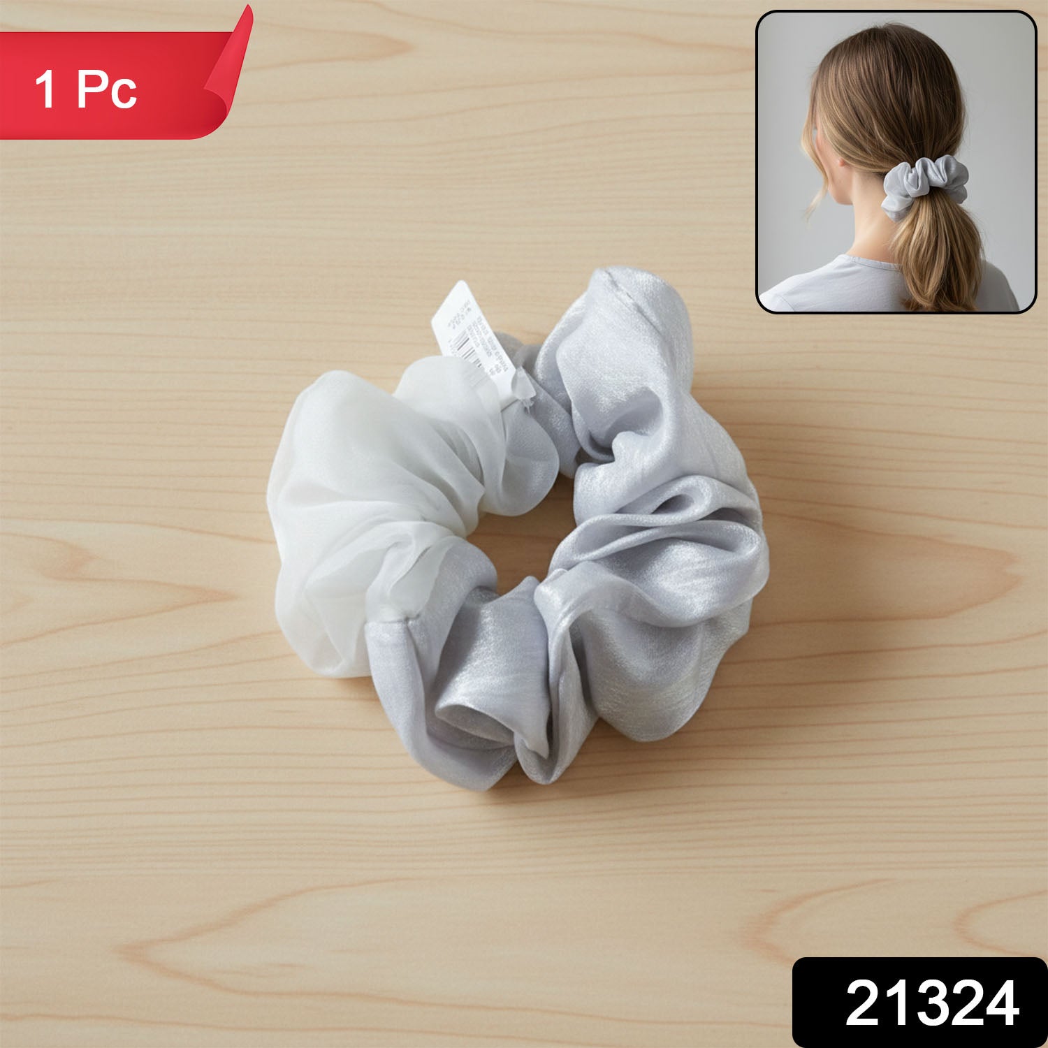 Dual-Tone Satin & Mesh Fabric Hair Scrunchie for Women & Girls – Soft Stretchable Hair Tie for Ponytail, Bun Styling & Elegant Daily Hair Management (1 Pc)