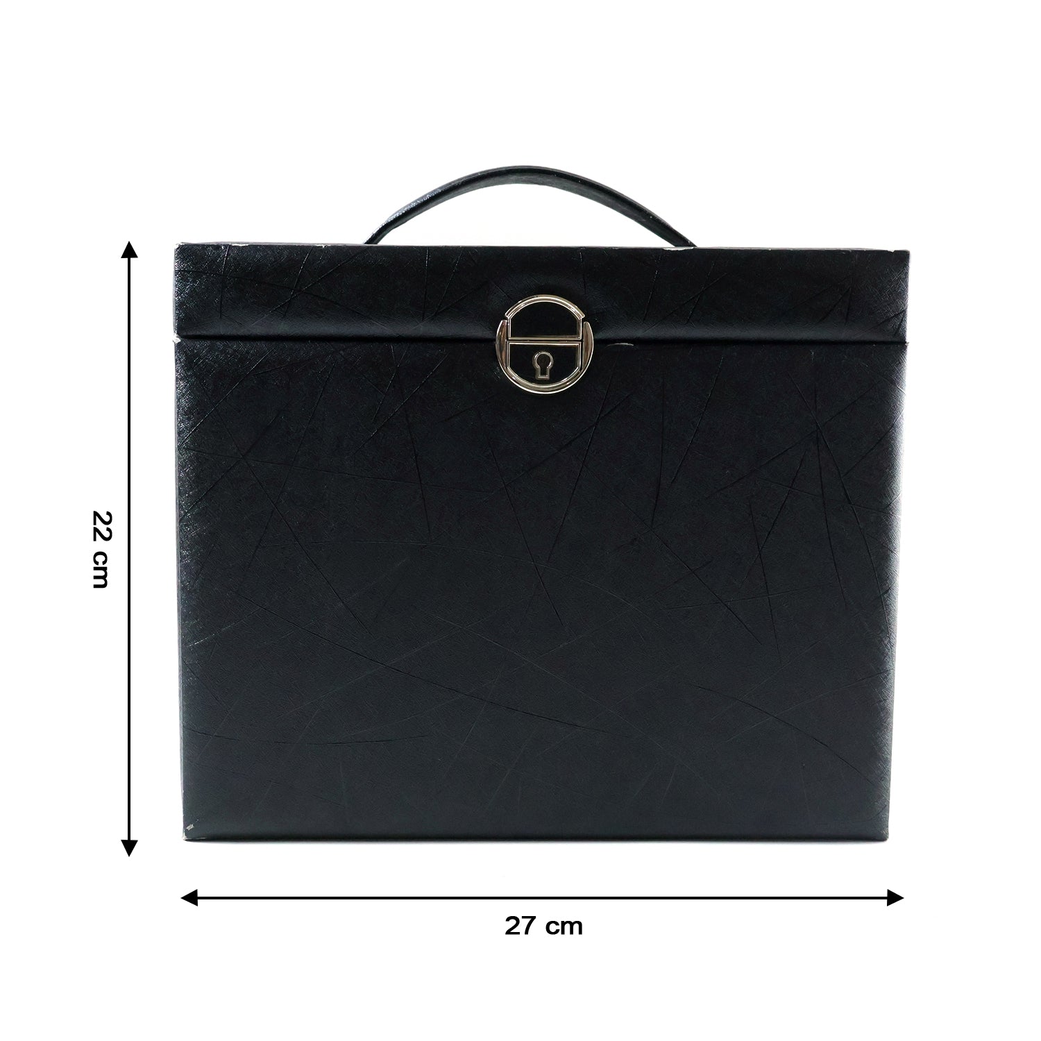 This luxury multi-drawer jewelry organizer storage box is designed to keep jewellery and personal accessories neatly arranged and easily accessible. Featuring a structured layout with multiple drawers and a built-in mirror inside the lid, it allows convenient selection and organization of different jewellery items in one place. The lockable design adds an extra layer of security, making it suitable for storing valuable accessories with confidence. Its refined appearance enhances dressing tables, wardrobes, or personal spaces while maintaining a clutter-free setup. Ideal for everyday organization as well as special collections, this jewelry box combines functionality with elegant presentation.