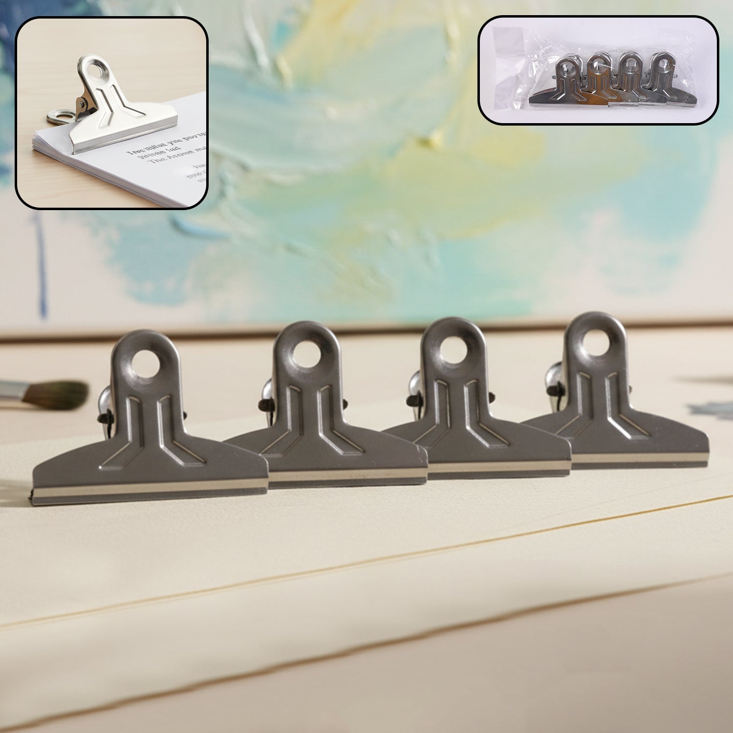 Heavy Duty Metal Paper Clamp Clips for Office & Home Use – Strong Grip Document Holder Clips for Files, Notes, Bills & Artwork – Reusable Multipurpose Stationery Clips – 4 Pc Set