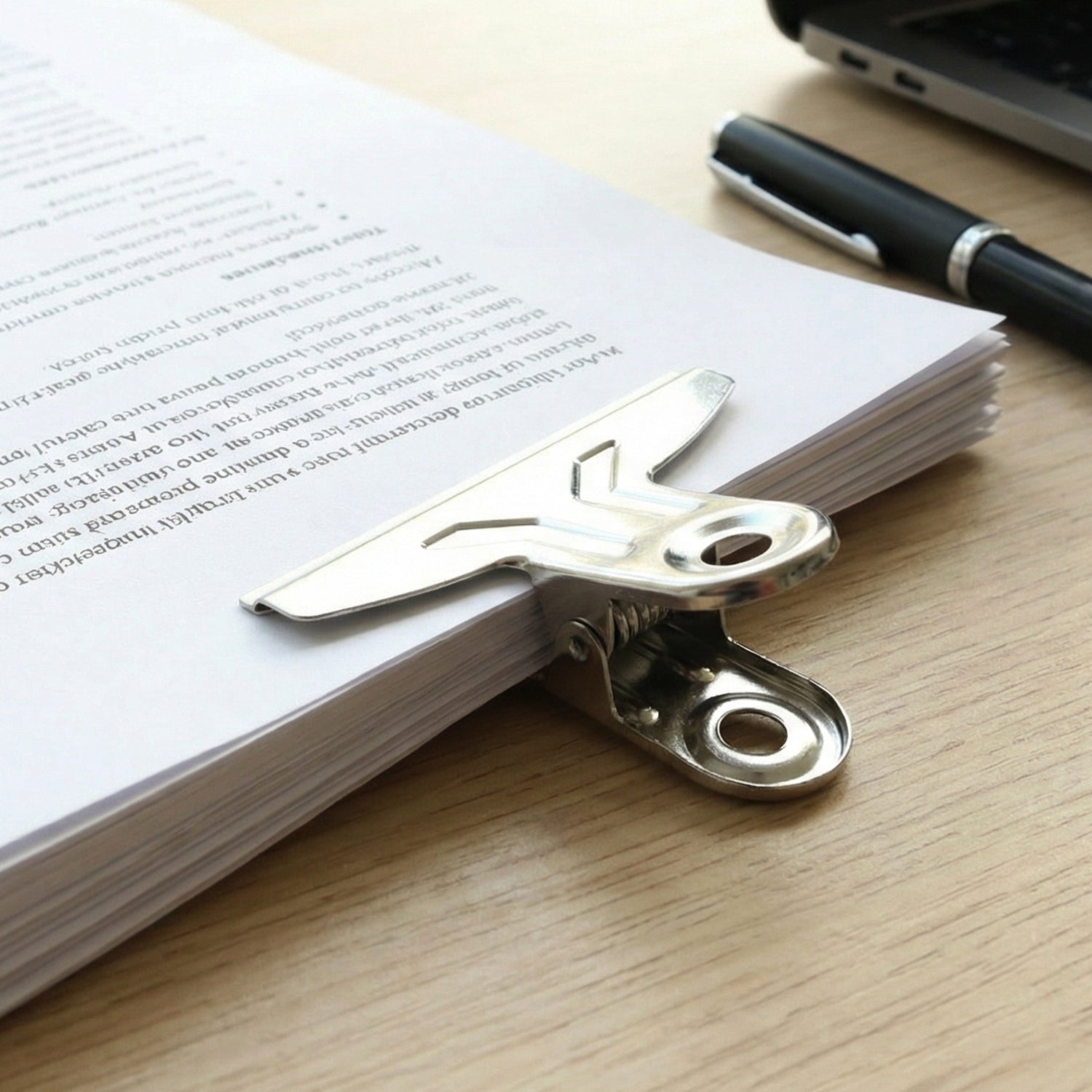 These heavy-duty metal paper clamp clips are designed to securely hold multiple sheets together without slipping or tearing. The strong spring mechanism provides firm pressure, making them ideal for organizing documents, notes, bills, artwork, and craft papers. Their flat gripping base ensures papers stay aligned while the smooth edges help prevent damage to documents. Suitable for daily office work, home organization, school projects, and creative tasks, these clips offer reliable performance with repeated use.