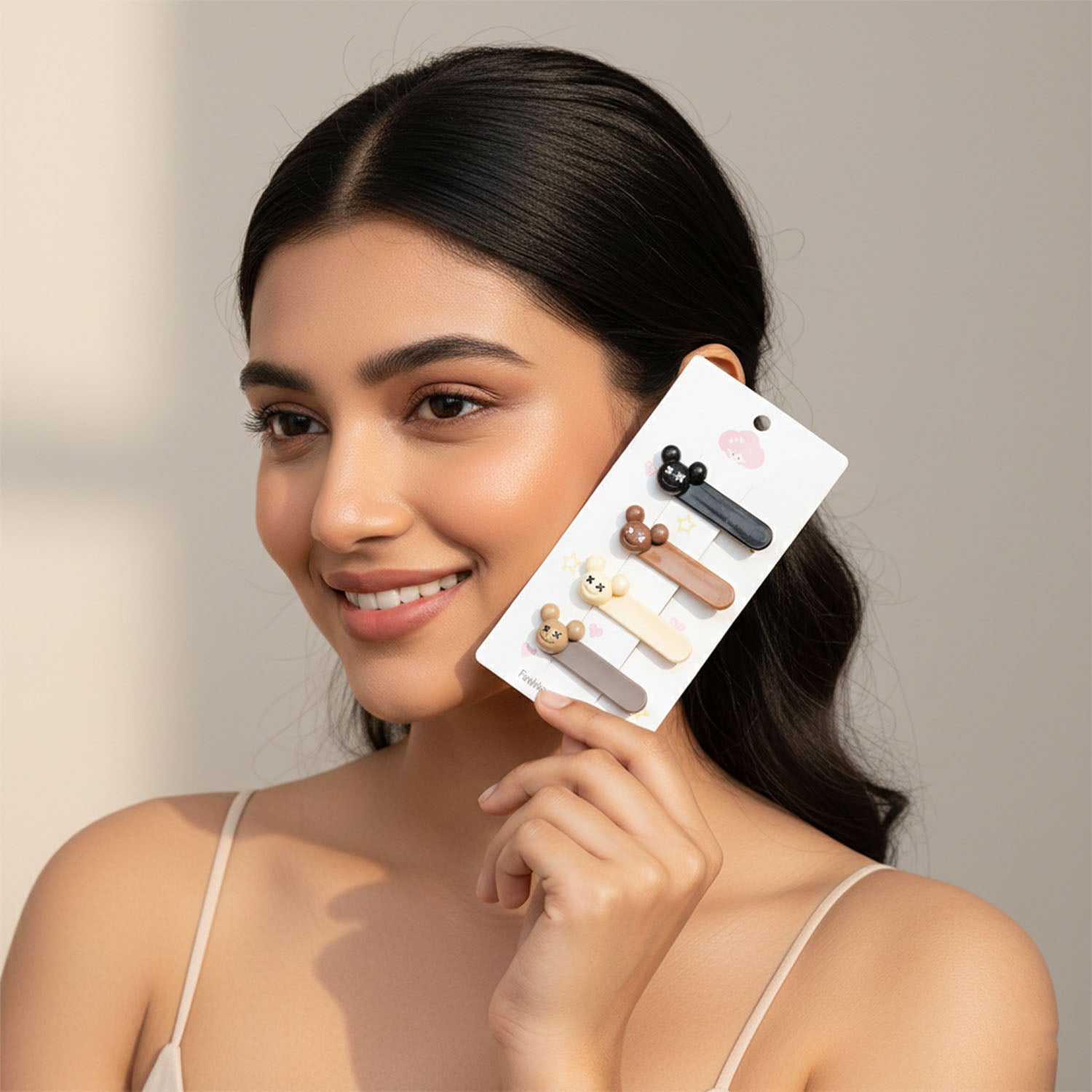 Cute Cartoon Bear Design Premium Fashion Hair Clips for Girls & Women – Stylish Snap Hair Accessories for Daily Wear, Party Styling, Office Looks & Casual Hairstyles – 4 Pc Set