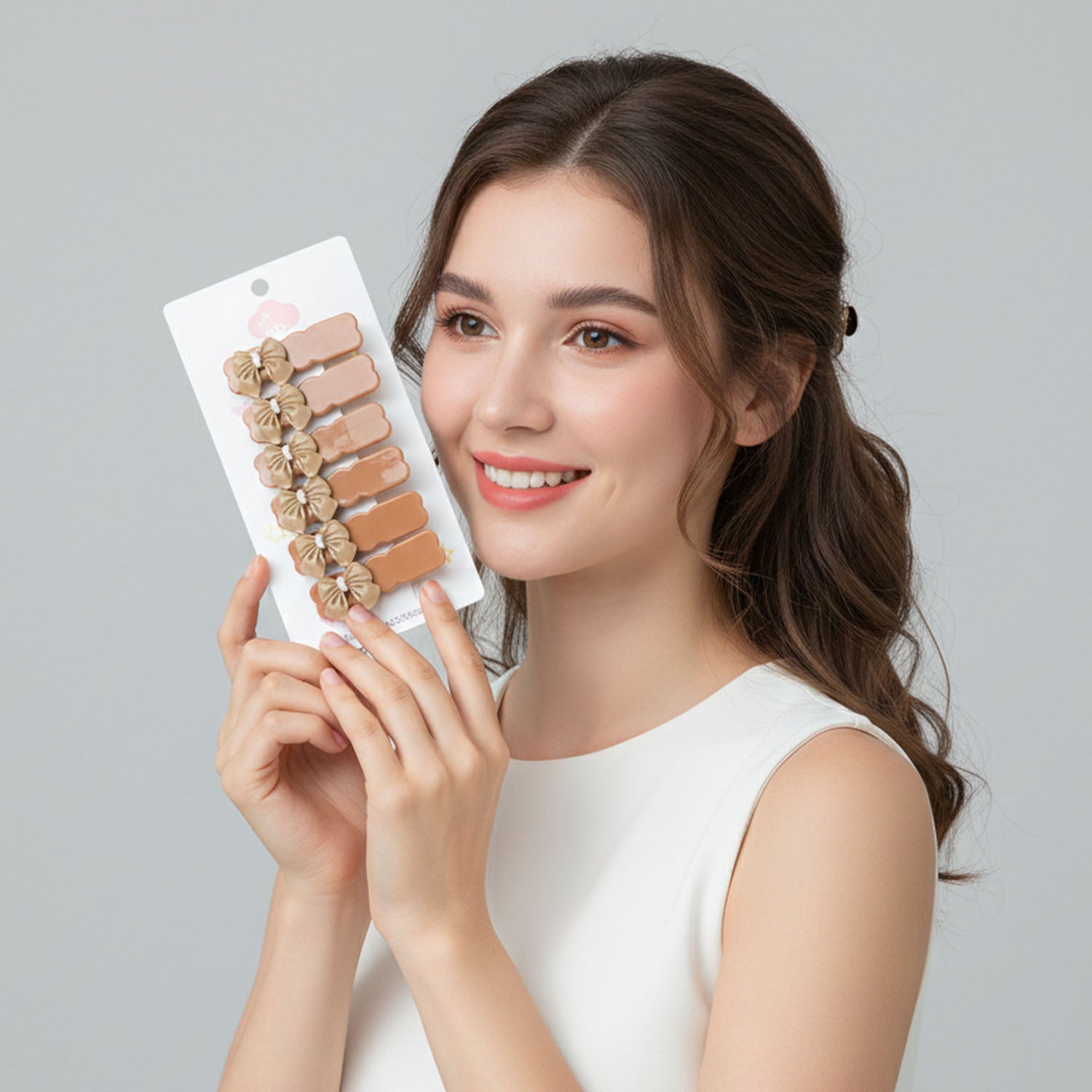 Enhance your everyday hairstyle with these elegant bow design premium fashion hair clips. Featuring a smooth solid-tone finish and a delicate bow accent, these clips bring a refined and graceful look to any hairstyle. The sturdy snap mechanism ensures a secure hold without tugging or damaging hair, making them comfortable for long-hour use. Their minimal yet stylish appearance makes them suitable for both casual and formal settings. A perfect blend of functionality and fashion, these hair clips are a must-have accessory for effortless styling.
