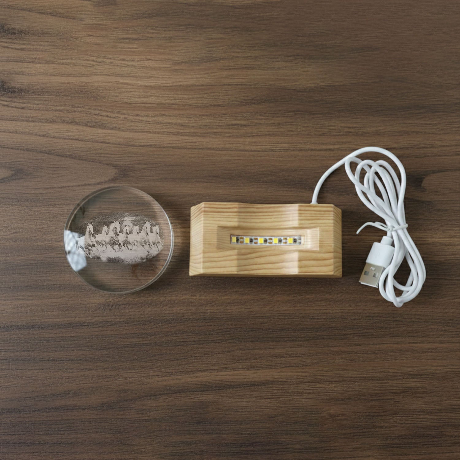 3D Crystal LED Table Lamp with Running Horses Design on Wooden Base for Home Décor, Night Lighting and Gift Use – Decorative Ambient Light Lamp