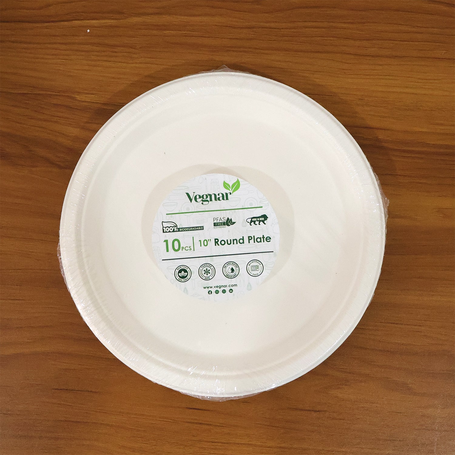 Vegnar Disposable Round Food Serving Plate (10 Pc)
