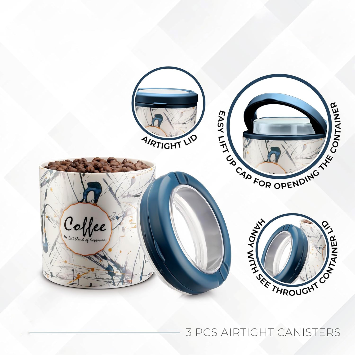 flavor printed storage container set, multipurpose plastic container set, tea storage container, coffee storage container, sugar storage container, set of 3 airtight containers, kitchen countertop organizer, pantry storage container, plastic food storage jar, carry handle storage container, airtight lid container set, multipurpose kitchen storage, tea coffee sugar organizer, countertop storage solution