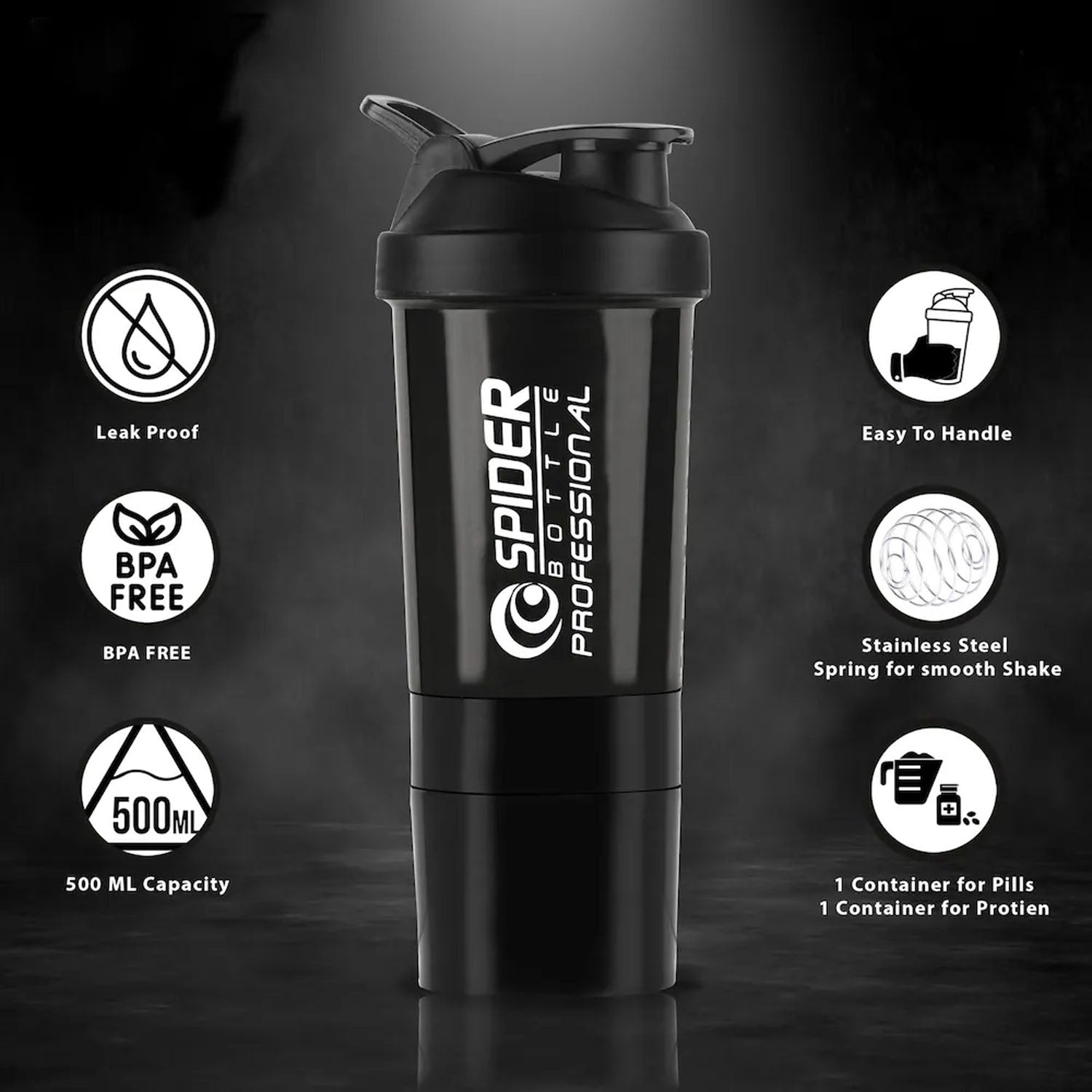 Multipurpose protein shaker bottle 500ml with mixing compartment and leakproof flip lid for gym workout travel use