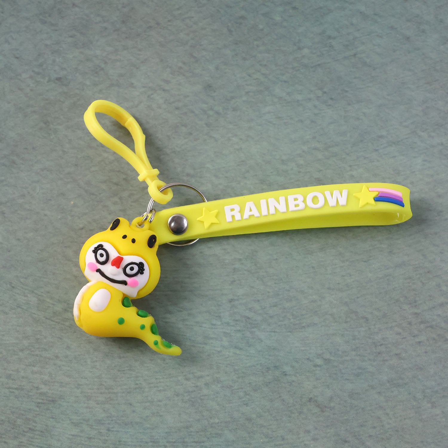 Cute Cartoon Dinosaur Keychain with “RAINBOW” Strap – Soft Animal Character Key Ring with Clip Hook for Keys, School Bags & Backpacks – Decorative Hanging Keychain for Kids & Adults (1 Pc)