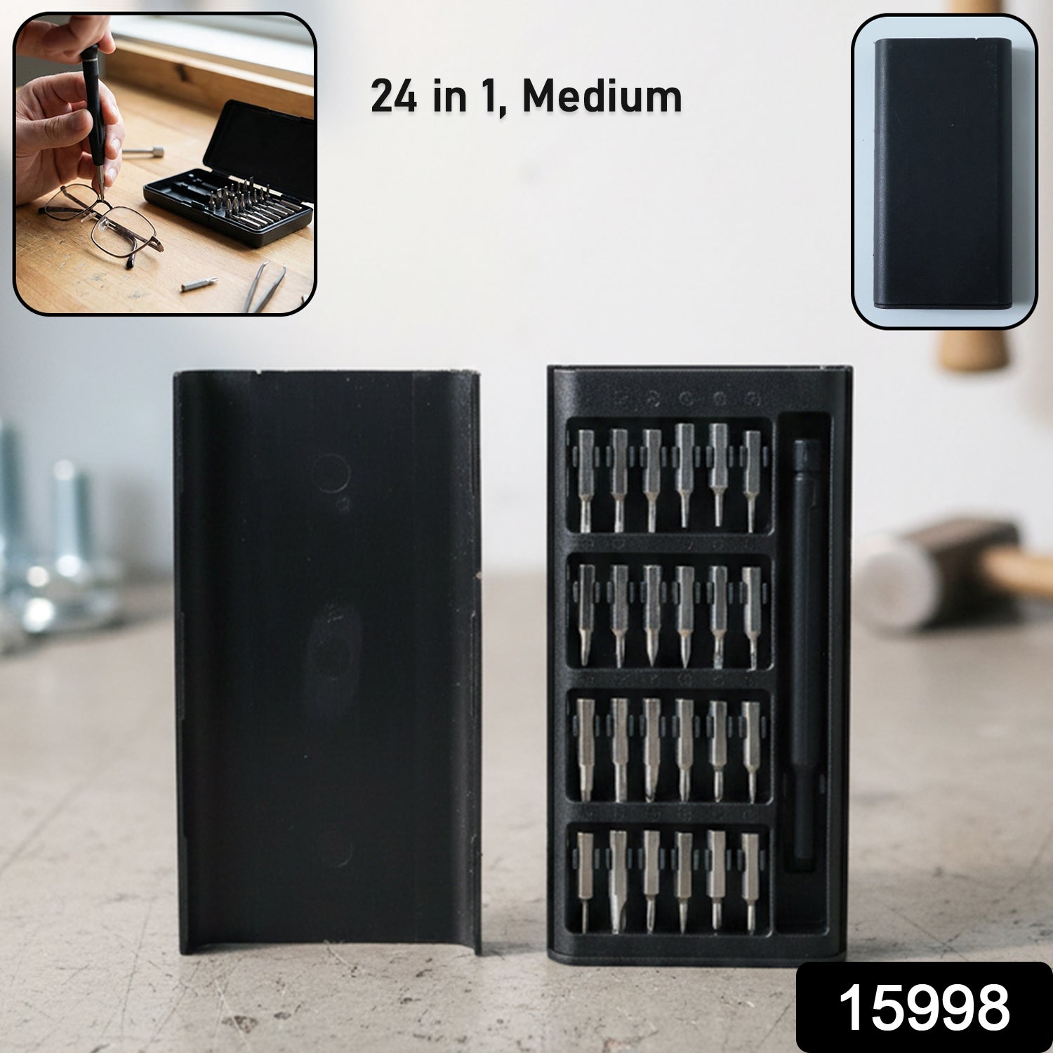 24 in 1 precision screwdriver set, medium size screwdriver kit, interchangeable screwdriver bits set, eyeglass repair screwdriver, watch repair screwdriver kit, small electronics repair tools, household repair screwdriver set, multi bit screwdriver set, precision tool kit, DIY repair screwdriver kit, laptop repair screwdriver set