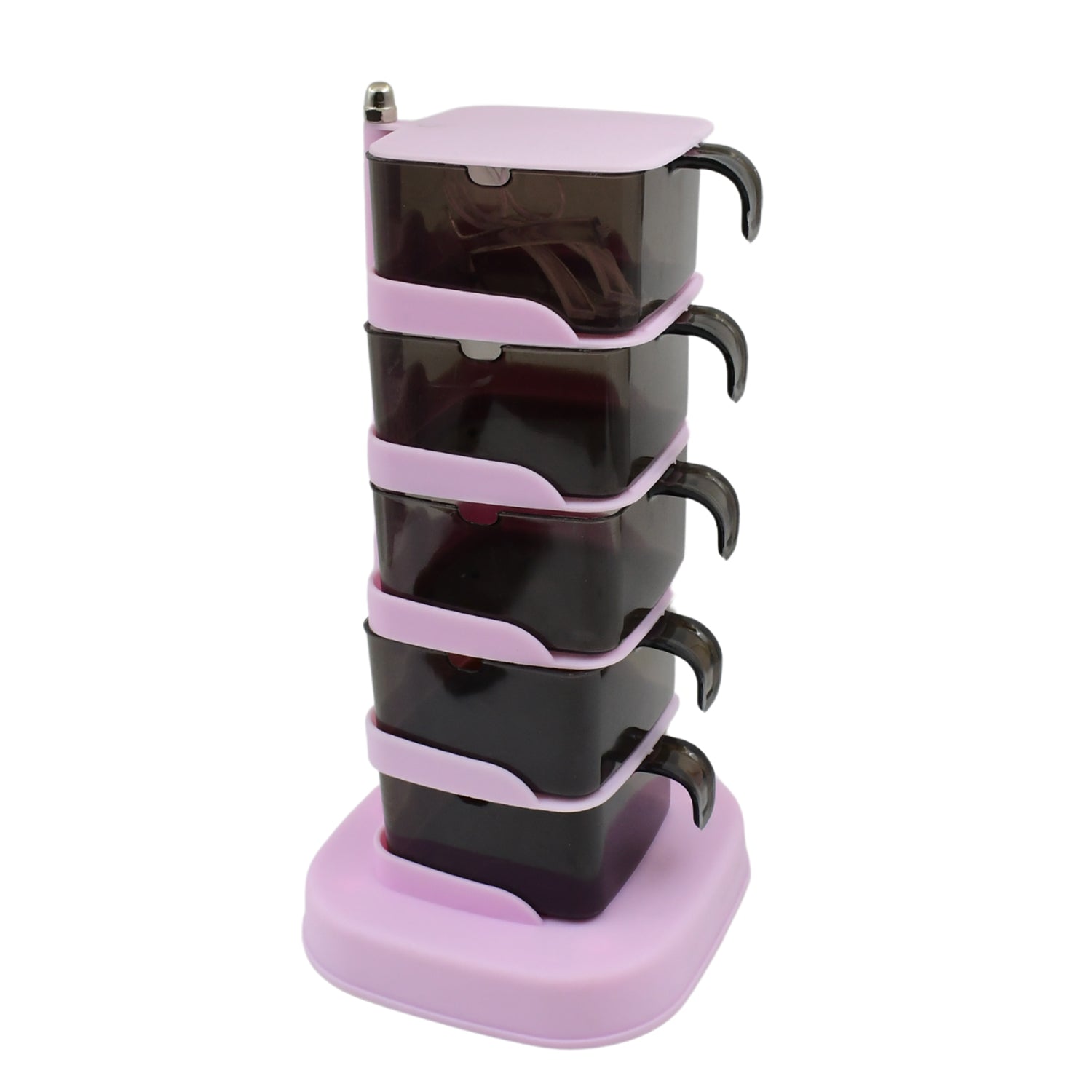 Rotating Spice Jars Vertical Rotatable Seasoning Box 5 Section / Tier 5 Spoon (1 Set)