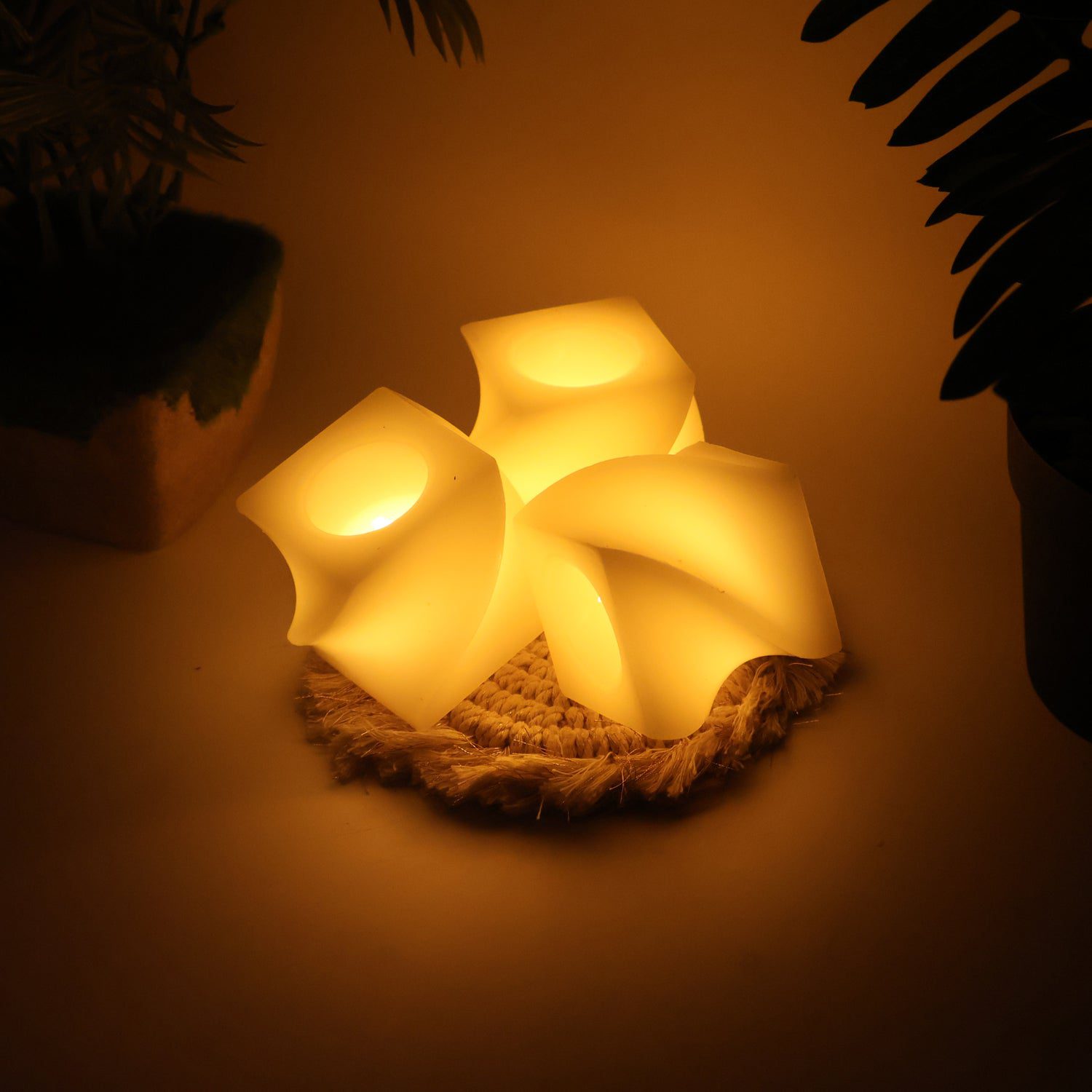 LED candles, Flameless candles, Decorative LED lights, Battery-operated candles, Ambient lighting, Tea light alternative, Home decor lights,Home decoration,Twisted design LED candle, Spiral flameless candle, Unique shape LED light, Decorative glow candle, Warm light LED candle