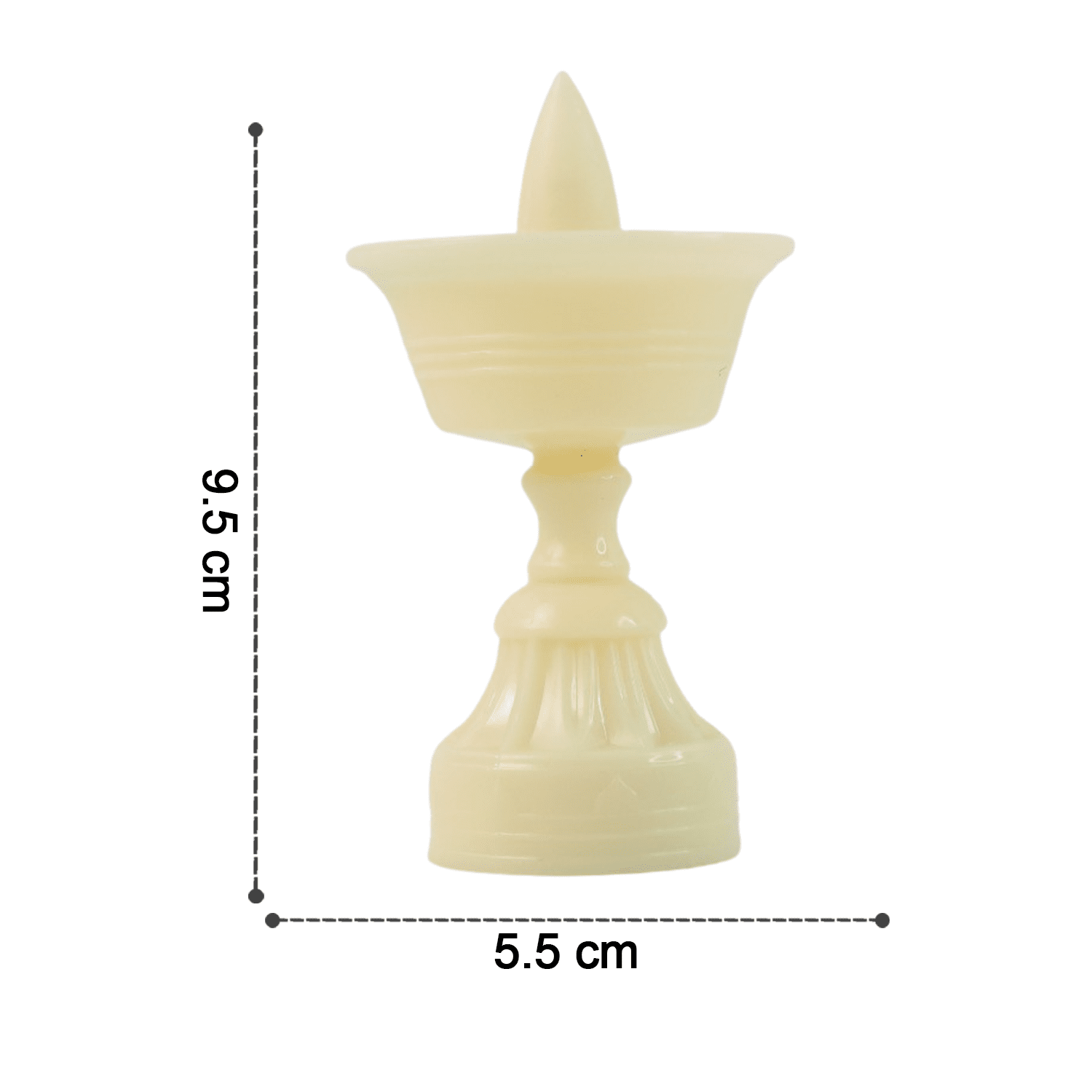 Color/Design: White pedestal diya with warm glowing LED flame