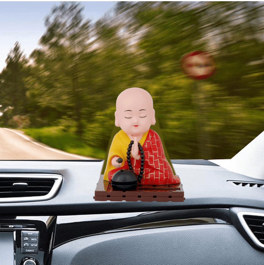 Solar Powered Sitting Buddha Statue for Gifting | Home Decor and Car Dashboard, Moving Head and Hand | Decor for Living Room Car Office (1 Pc / Medium)