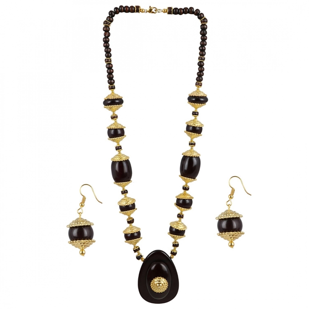 South Indian Beaded Necklace for Women | Dark Brown & Golden Designer Beads