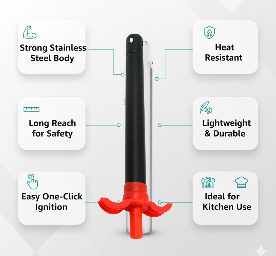 - Must Have For Every Kitchen Made from mild steel for highest durability for Flawless Sparks, Perfect Friend for your gas stove and make your cooking easy, safe, and efficient.
