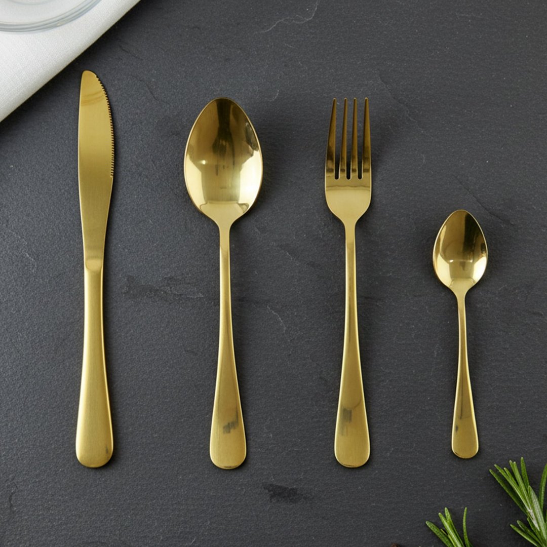 Includes 6 spoons, 6 forks, 6 knives and 6 tea spoons