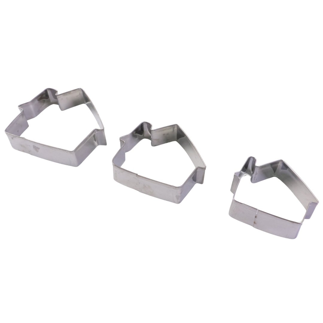 Take a look at this stainless steel house shape cookie cutter set (3 pc mix design). Perfect for baking fun and creative treats. Buy now for kitchen baking.