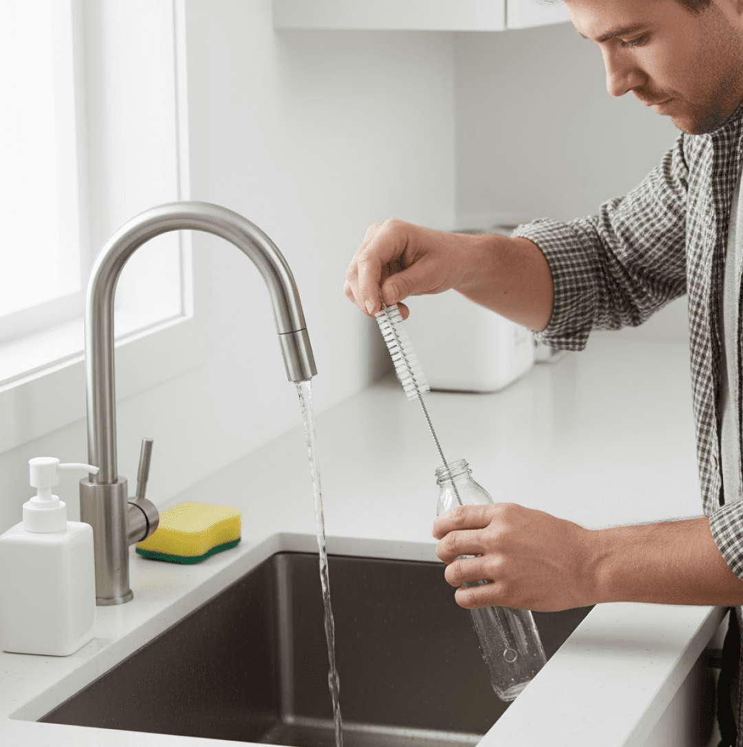 Sturdy brush head, reaching the entire inner surface of the straws for a thorough clean.