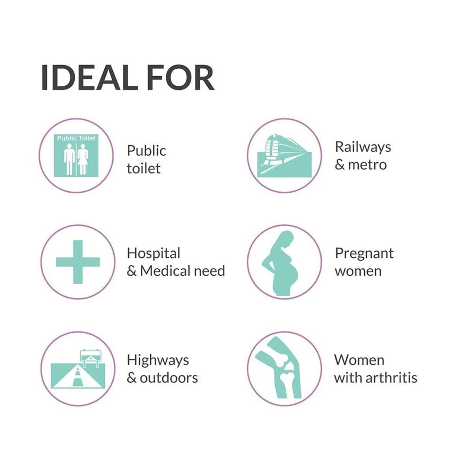 Female reusable urination device allows women’s of all ages to stand and urinate with its unique designed funnel – when you don’t want to sit on an unfriendly toilets. A must-have device for hospital and medical needs, highways and outdoor, railway and metro as well as public toilets. First portable, reusable female urination device for women using which women can stand and urinate in all public and common toilets. It is a revolutionary product for women who hate dirty toilets when travelling fights or train or highways for work or leisure treks, marathons, road trips, events or those with medical condition joint pains or pregnancy. Using Pee device you can simple stand and pee and avoid all UTIs or infections or yucky experiences at dirty toilets. It comes with simple open place pee throw instructions and is very convenient to use with no spills. Now use reusable pee device and stay away from infections, UTI. No more wiping of seat, no more squats, no more holding it in.
