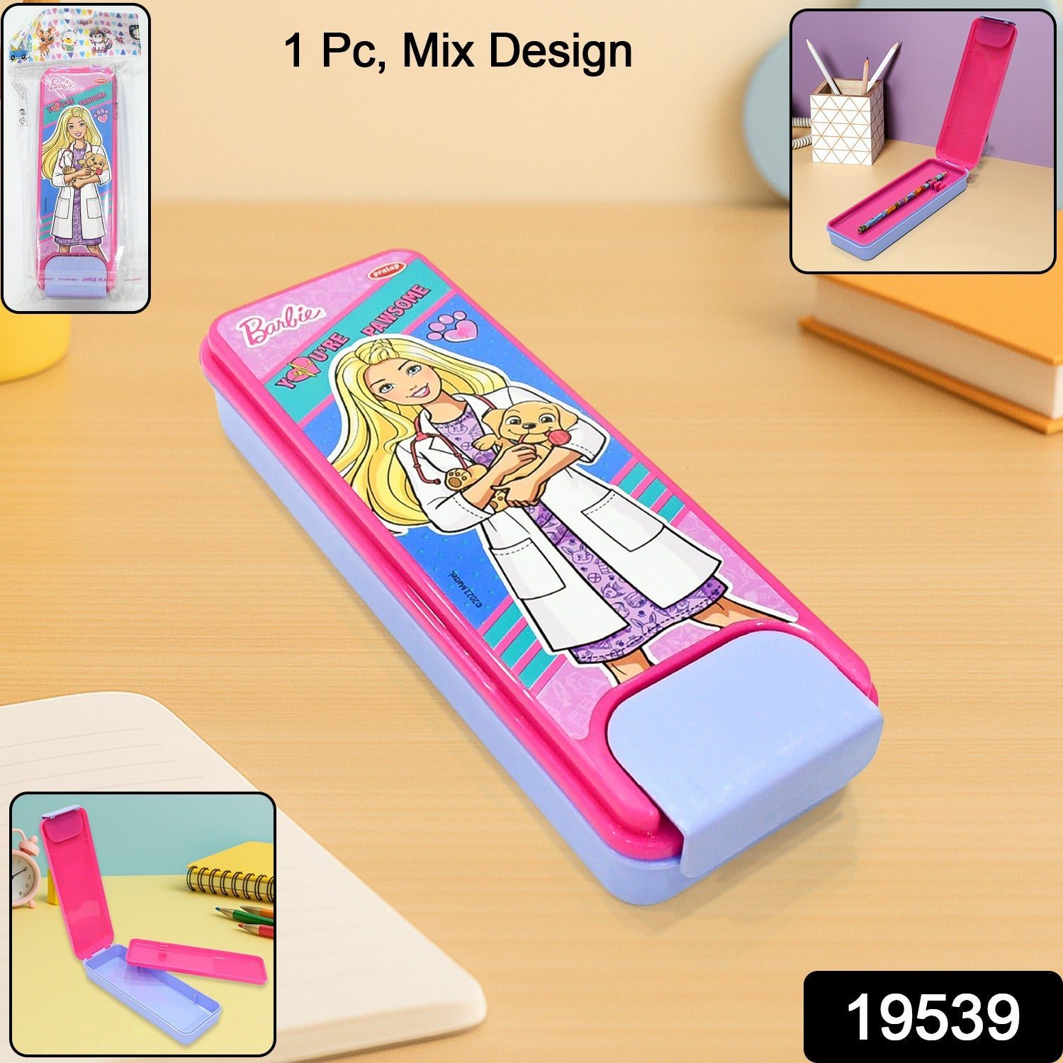 Brighten up your child’s school day with this charming hard top pencil box featuring vibrant cartoon character prints. Crafted from sturdy plastic, this pencil box offers both style and practicality. The flip-open lid design makes it easy for kids to access pencils, pens, and other stationery essentials, while keeping everything neatly organized. Its compact size makes it perfect for fitting in school bags, desks, and study tables. Each pencil box comes in a unique design, making it a delightful surprise for kids.
