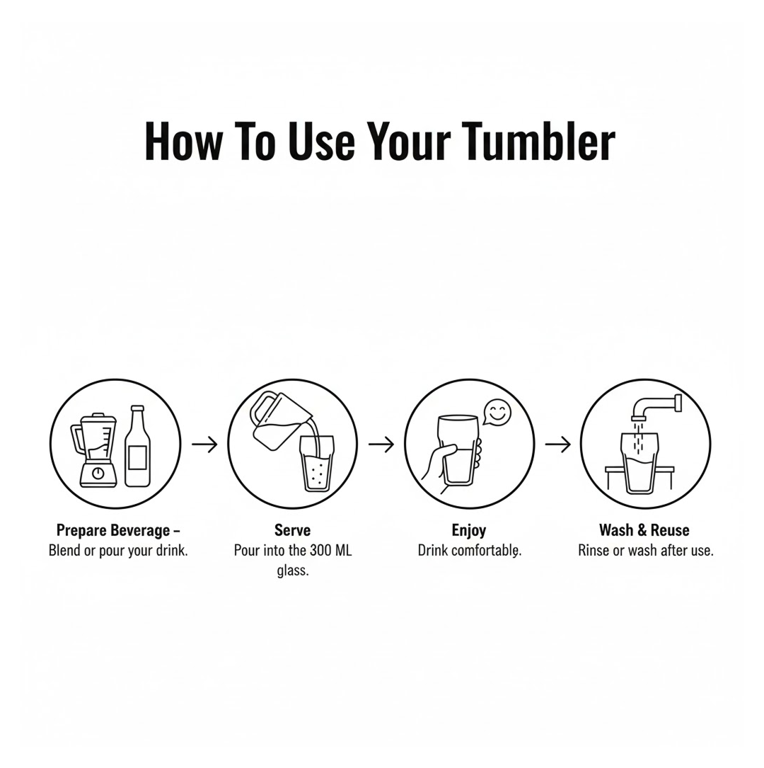 Each glass has a 300 ML capacity, ideal for smoothy, juices, and milkshakes.
