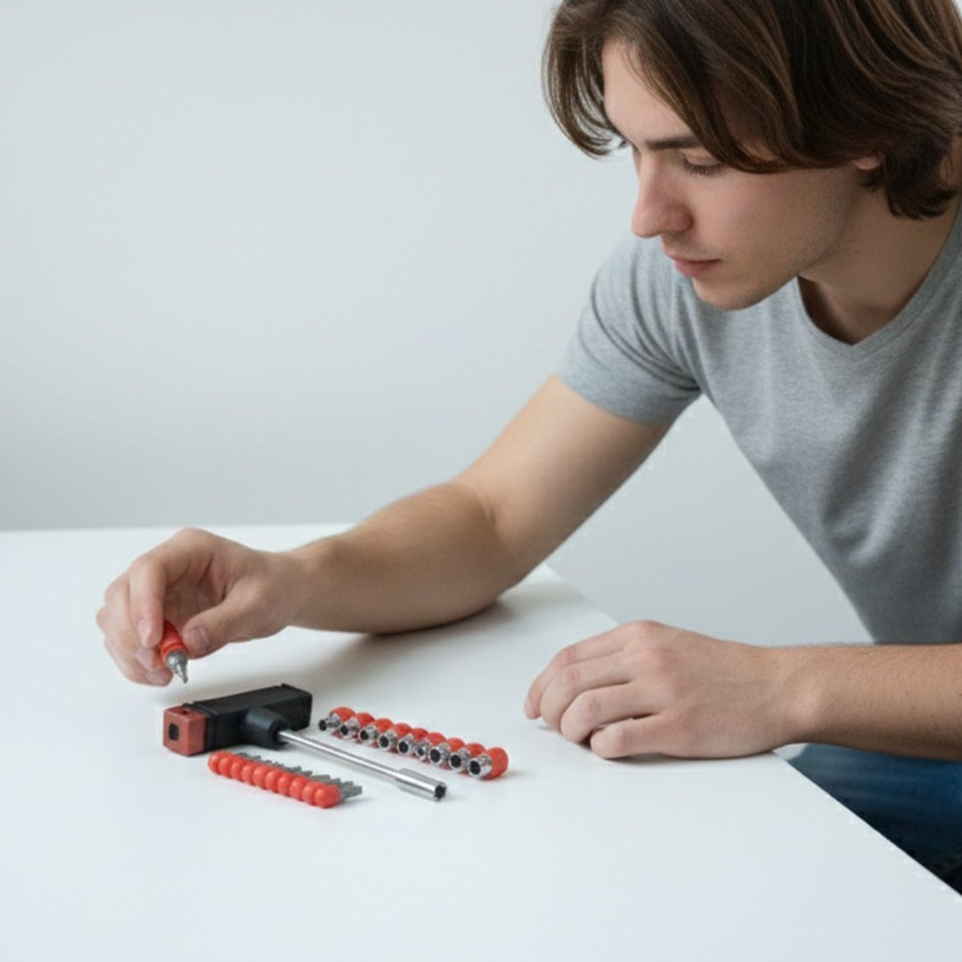 Upgrade your toolbox with this practical T handle screwdriver tool kit set featuring 20 interchangeable screwdriver heads for versatile repair and maintenance tasks. The sturdy T shaped handle provides enhanced torque and improved grip, making tightening and loosening screws more efficient and effortless. Designed for durability, the strong metal shaft and precision screwdriver heads ensure reliable performance for everyday home and workshop use. Whether assembling furniture, repairing appliances or handling DIY projects, this compact and organized set delivers convenience and functionality. A must have addition for both beginners and professional users.
