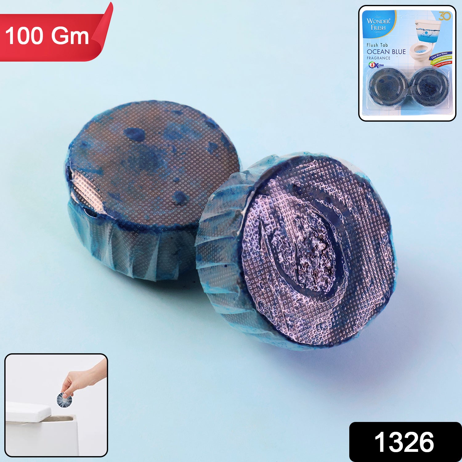 1326 Toilet Cleaner Flush Tab Ocean Blue 100 Gram Description :- OPEN IT. Remove the block from blister. You need not remove the –