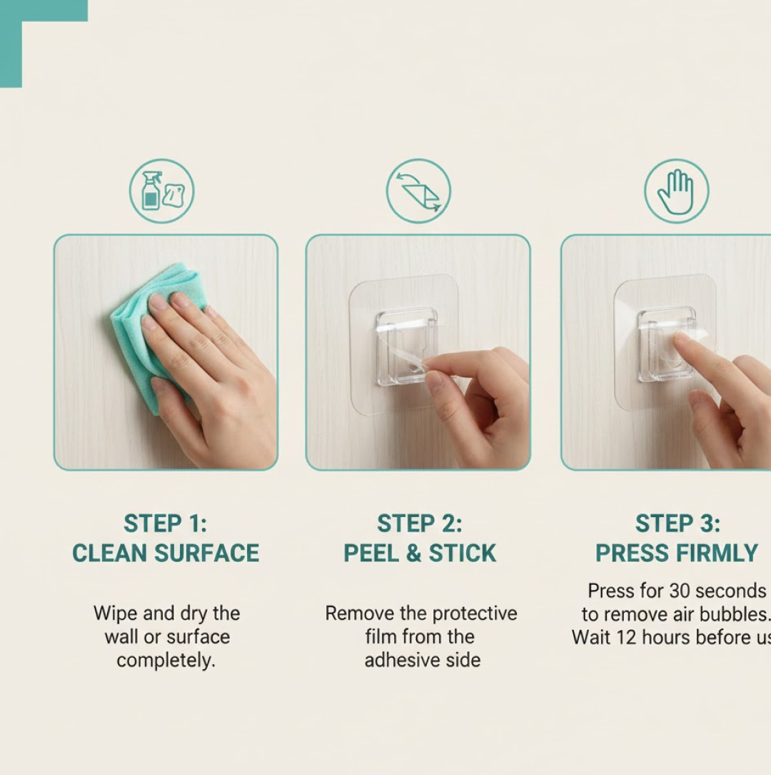 Check out strong transparent adhesive hooks for hanging daily essentials without drilling. Ideal for home, kitchen, or bathroom. Buy now easily.