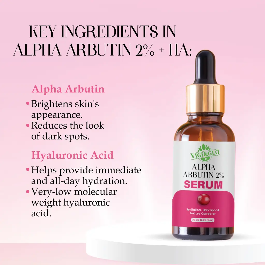 VIGI & GLO Alpha Arbutin 2% Face Serum for Dark Spots & Glow – 30ml