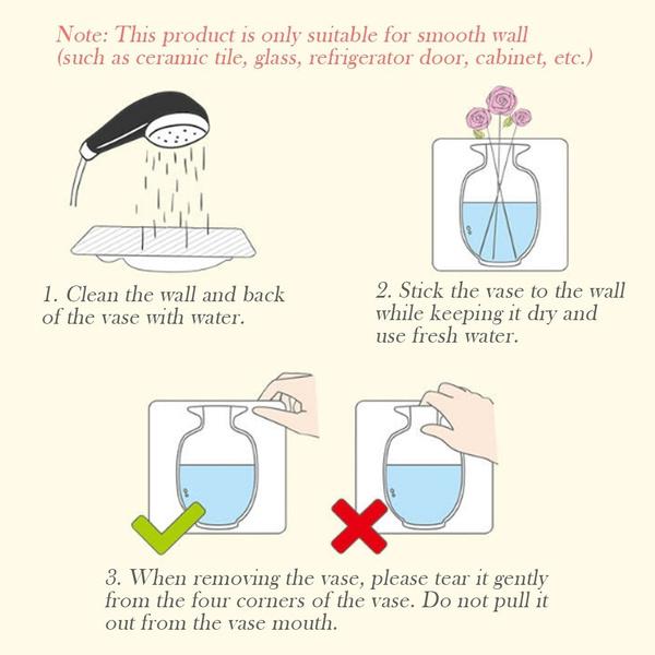 Reusable: Don’t need to glue or nail. Remove and stick the Flower Vase again and again with no damage on the surfaces such as widows, glass door, mirror, refrigerator, glass cabinet, ceramic tile, etc.
