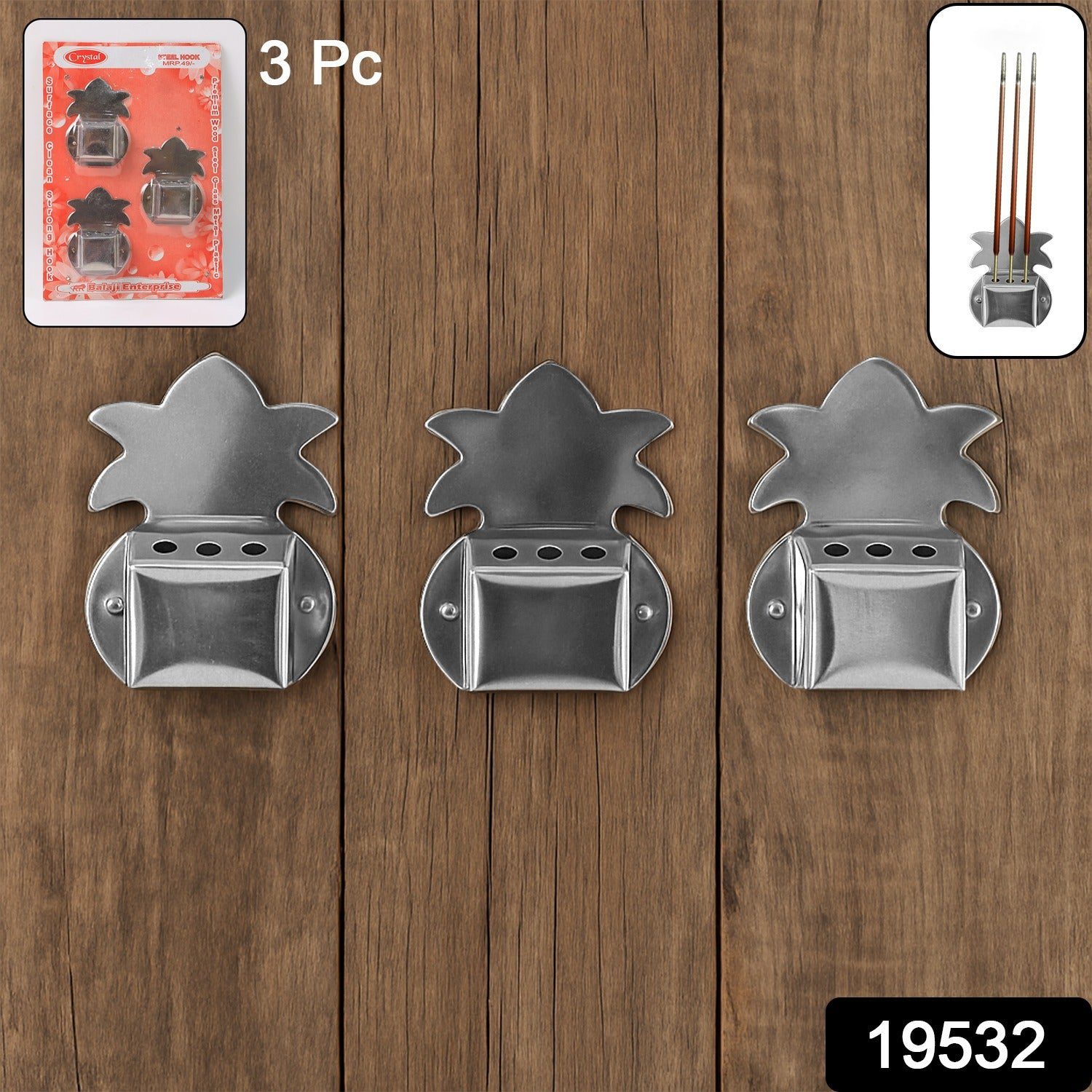 3 Pc Wall-Mount Metal Incense Stick Holders – Durable Stainless Steel Agarbatti Stand for Home Temple, Pooja Room & Spiritual Corners – Easy-Fix Screw Mount Design