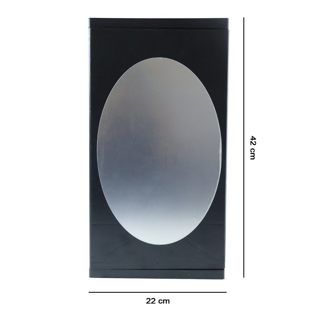 Wall Mounted Black Rotating Storage Cabinet Organizer with Front Oval Mirror – Wall Mounted Multi-Layer Bathroom and Dressing Room Mirror Cabinet 22 x 42 cm (1 Pc)