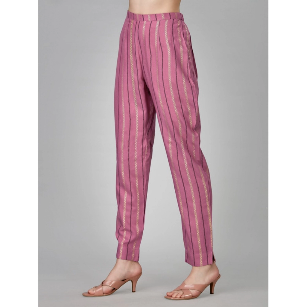 Elevate your everyday style with this Elegant Purple Embroidered Rayon Kurti Pant Set. Featuring comfortable 3/4th sleeves and intricate embroidery, this two-piece set offers both grace and comfort. Perfect for casual wear, festive occasions, or daily office attire, making it a versatile addition to your ethnic wardrobe.