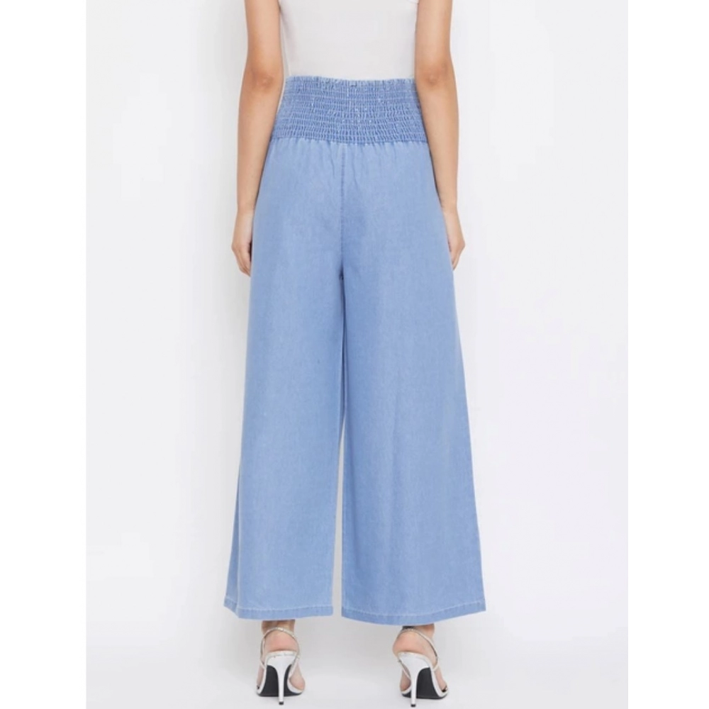 Stunning Women’s Solid Blue Smocked Denim Trousers